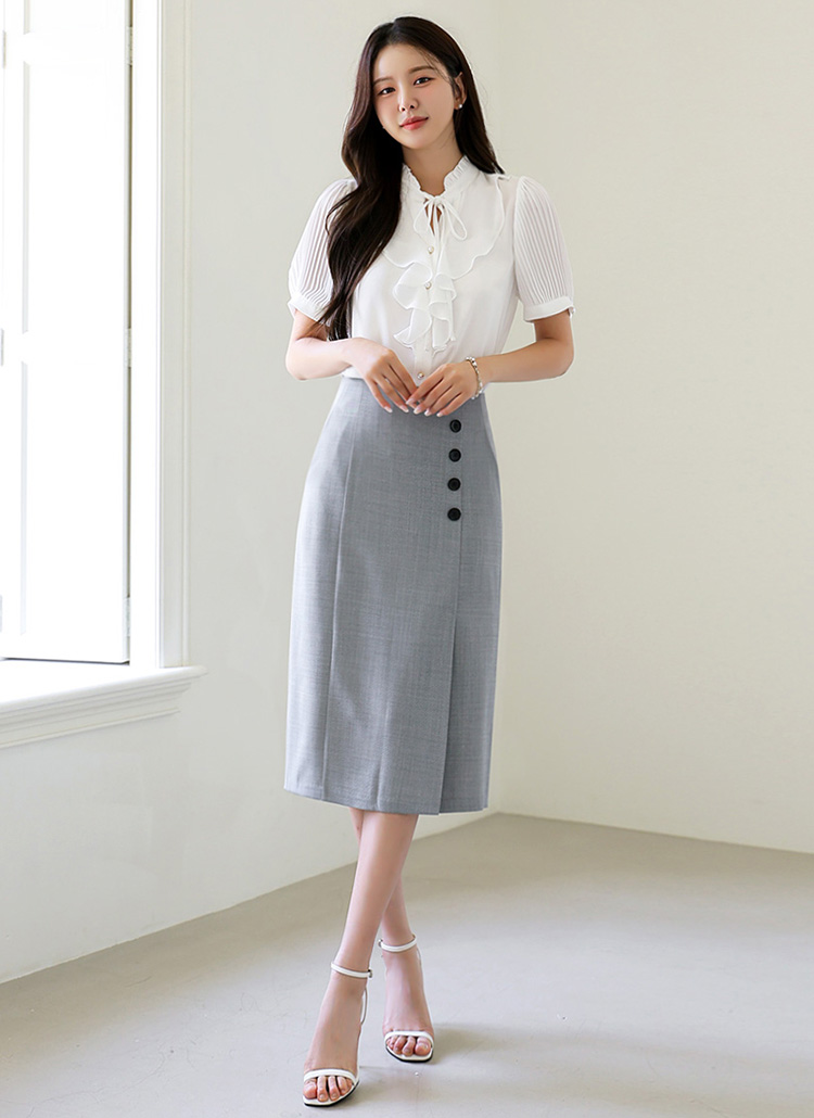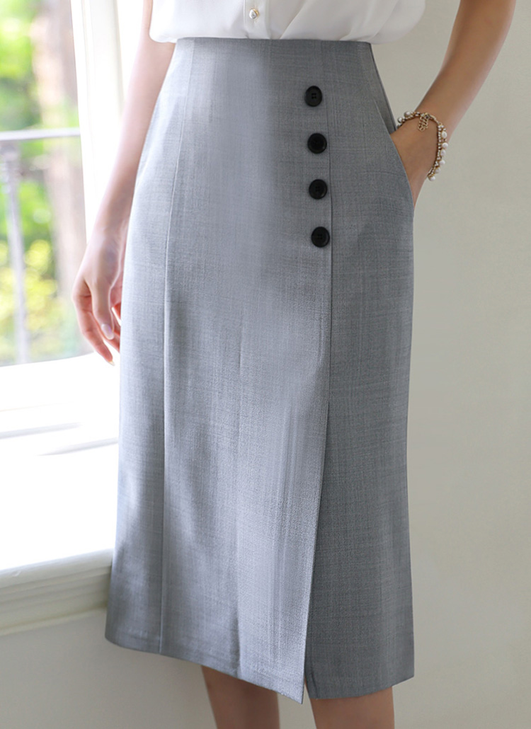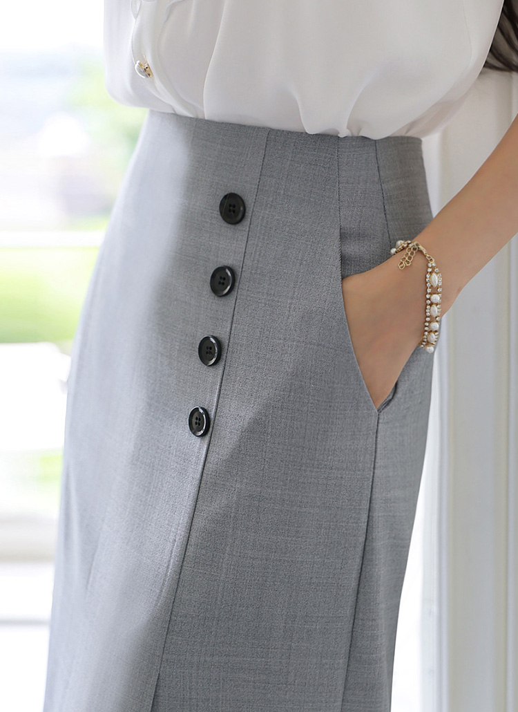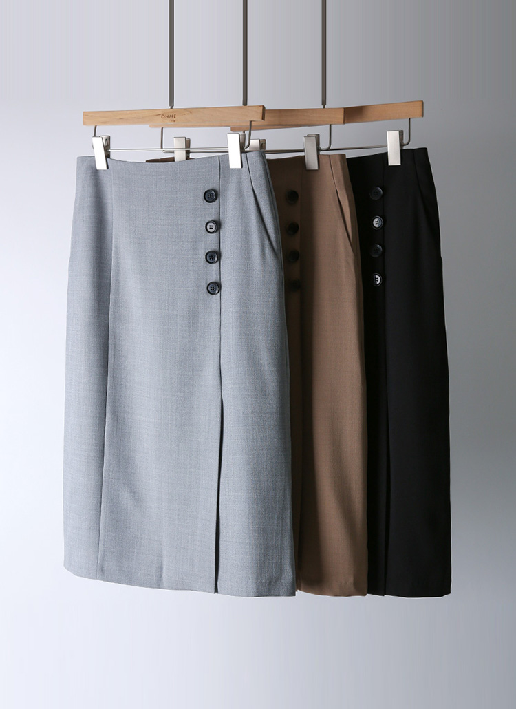 엔드 사이드 버튼 밑단 트임 포켓 H라인 펜슬 스커트