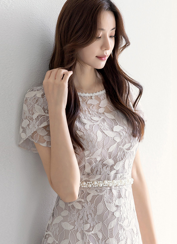 펄핑크베이지 컬러톤에 펄이 은은하게 도는 레이스 소재로