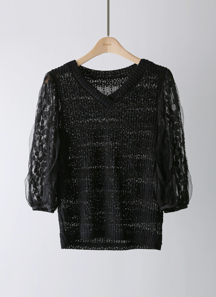 소매 부분은 시스루 디자인으로 여린 어깨라인을 강조해주어