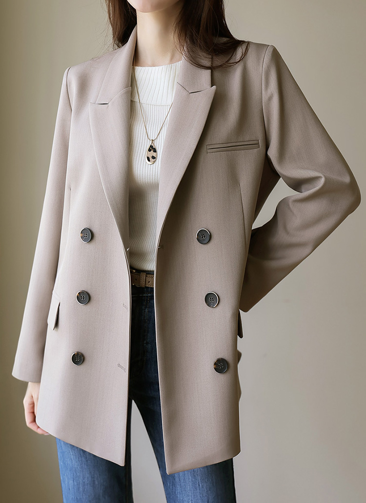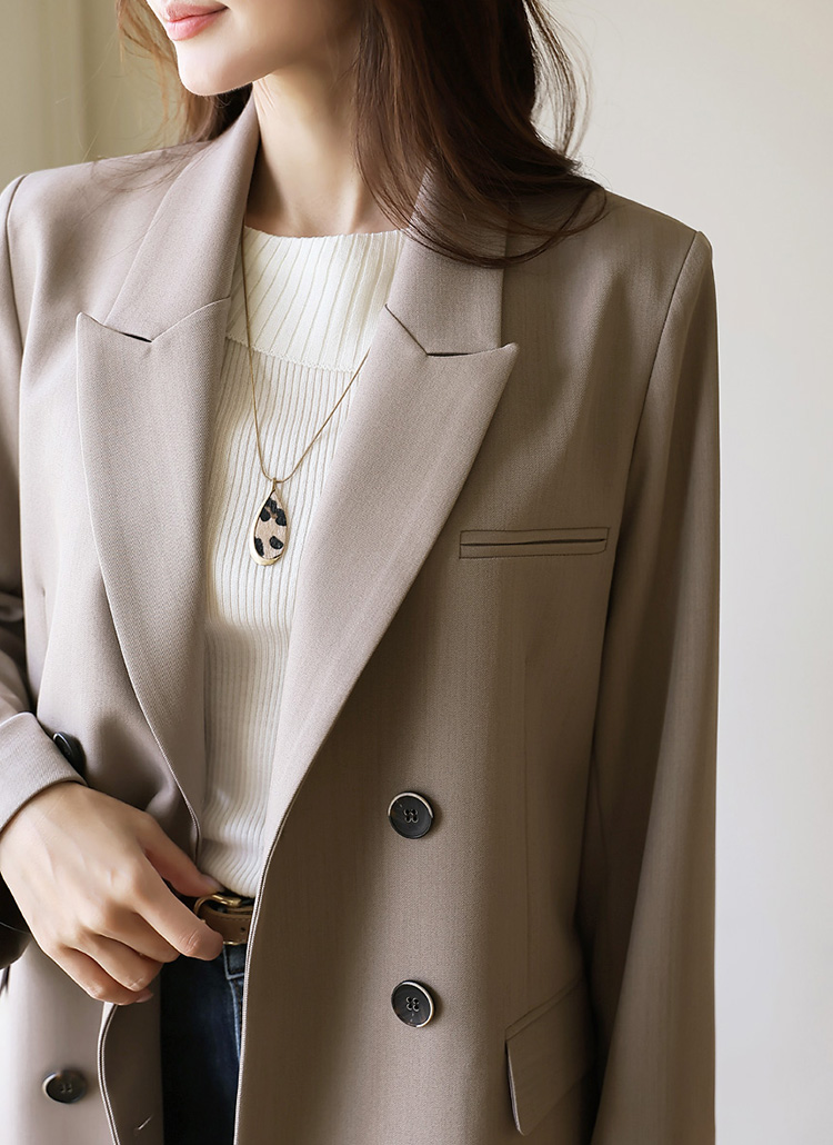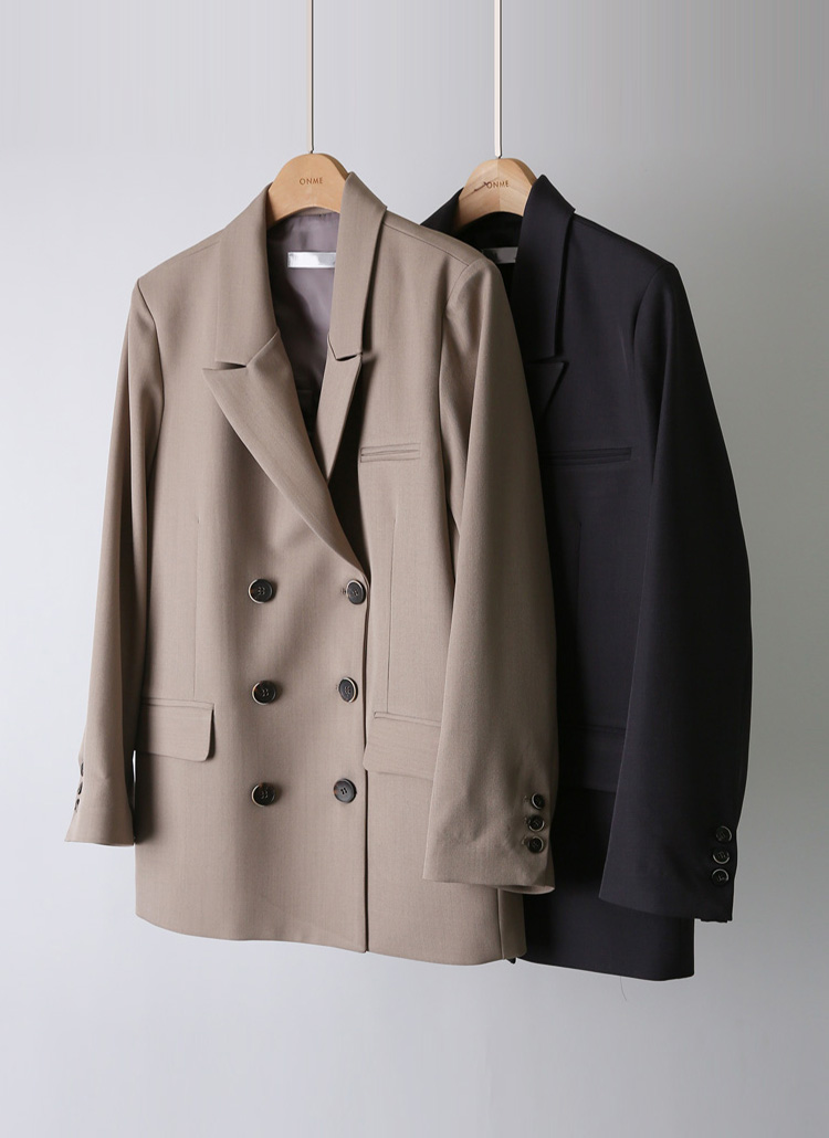 마일드 톤 세미오버 미드 더블 테일러드 자켓