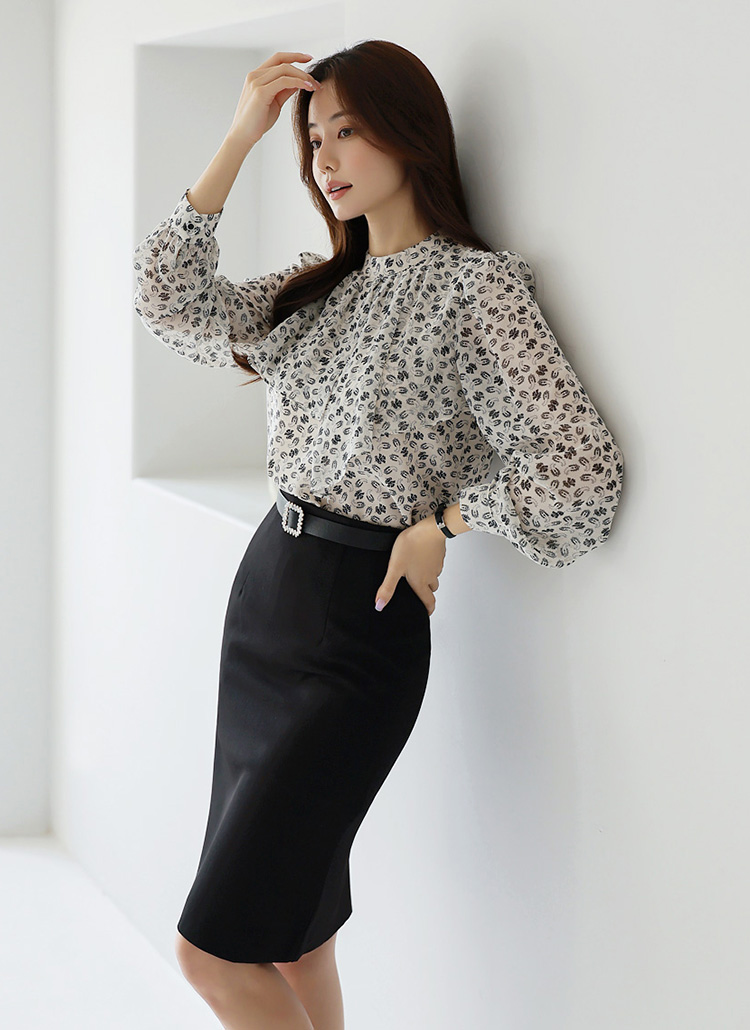 같은 패턴의 쉬폰 소재가 셔링 커버로 레이어드 된 디자인으로