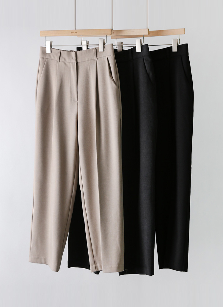 [Theonme] 심플 테이퍼드 핏 핀턱 레직기 뒷밴딩 슬랙스