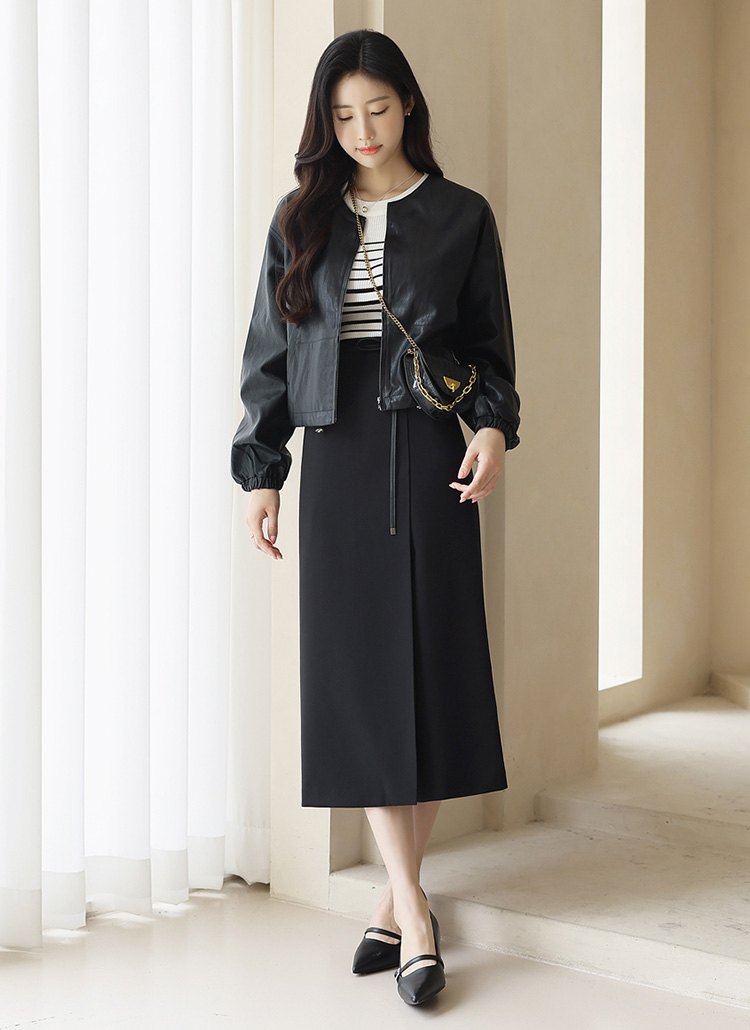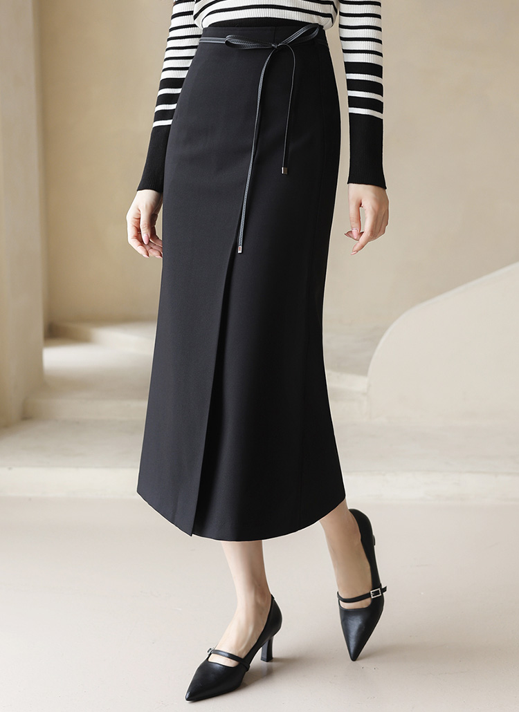 [Theonme] 레더 벨트SET 슬릿 슬림라인 롱 스커트