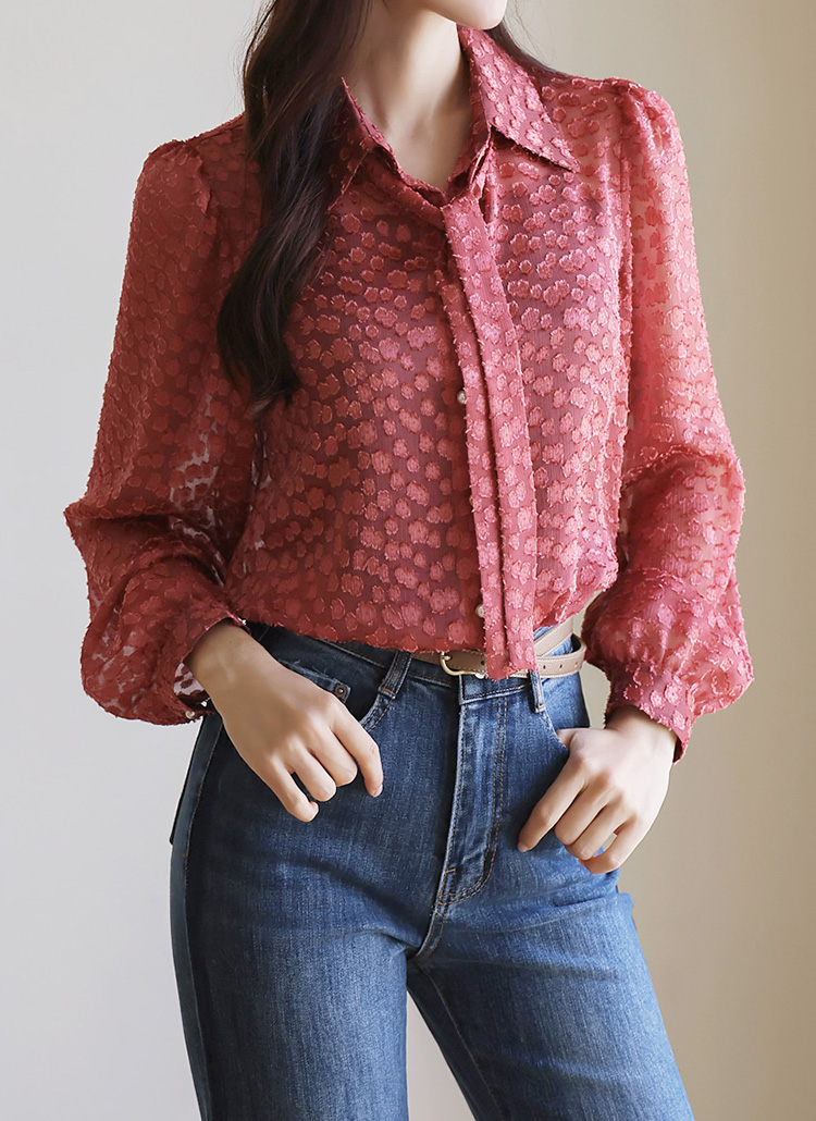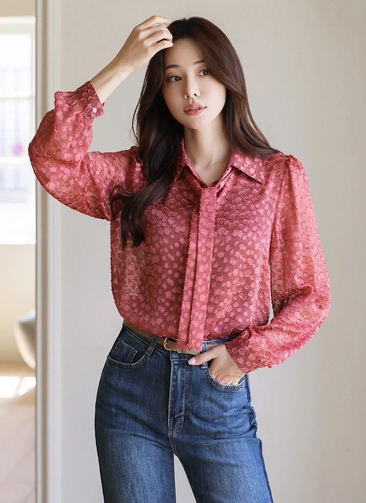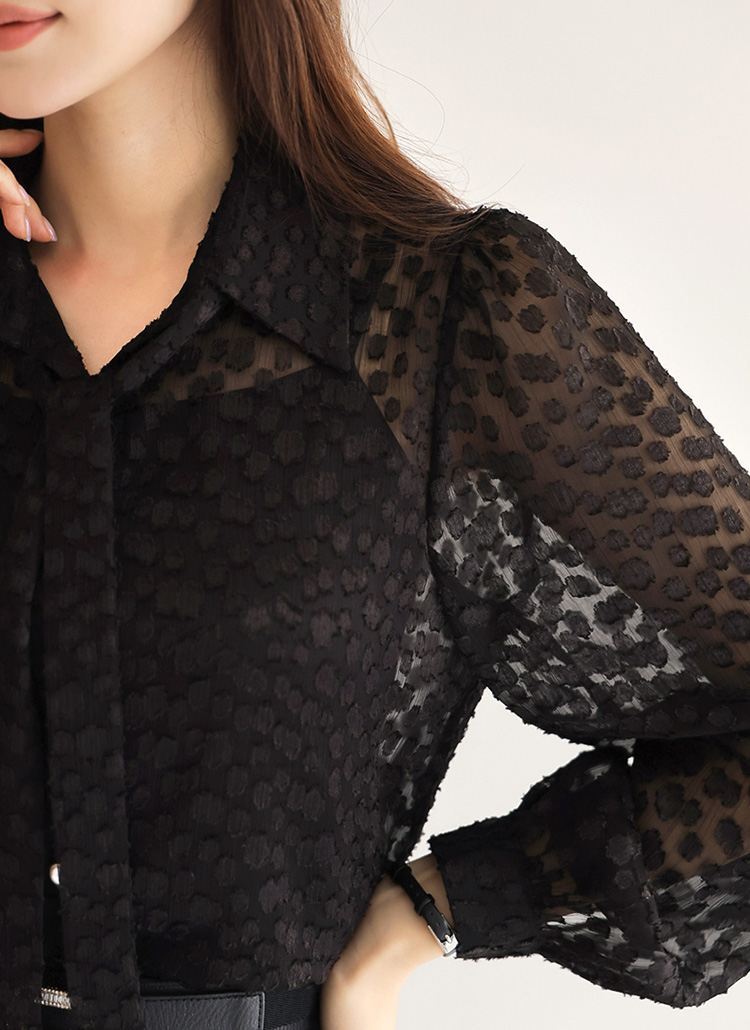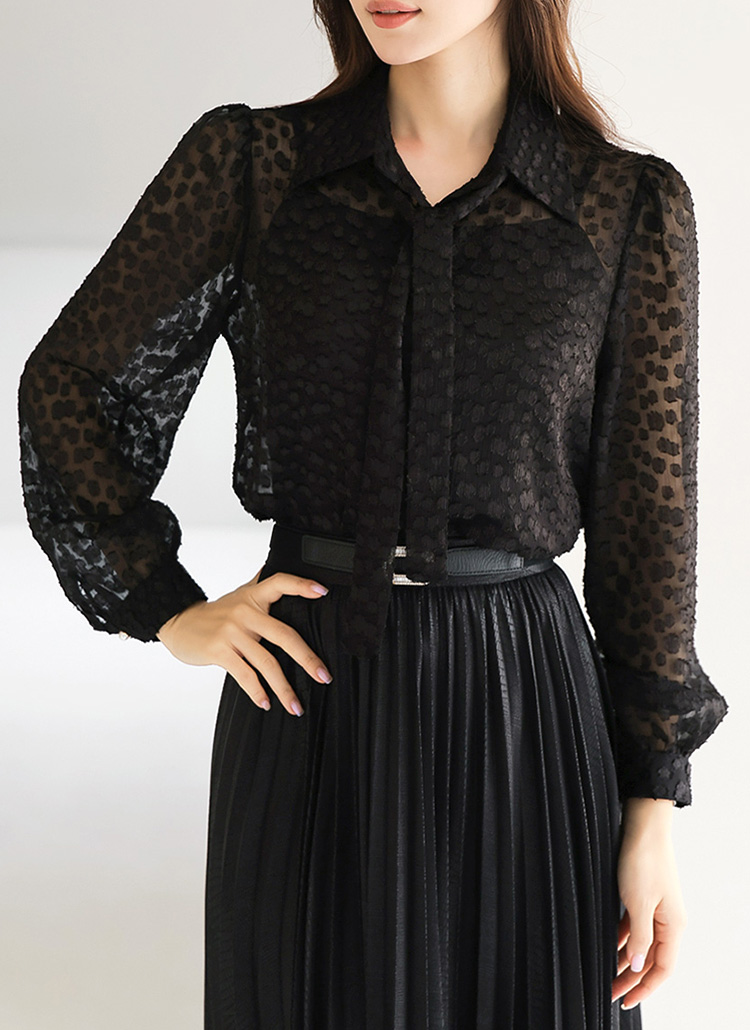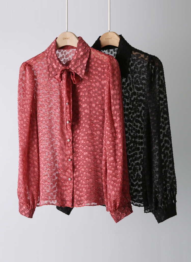 [LouisAngel] 꽃잎같은 도트 쟈가드 리본 타이 SET 쉬폰 블라우스