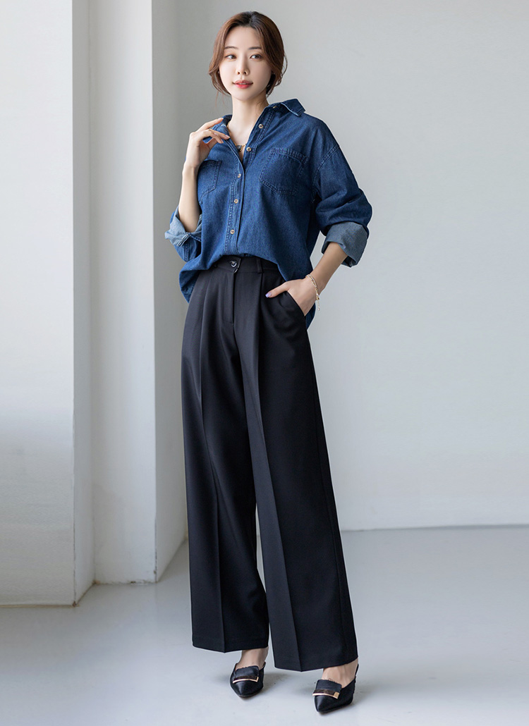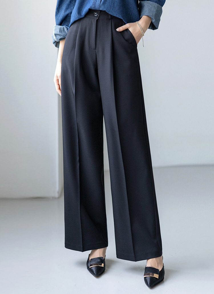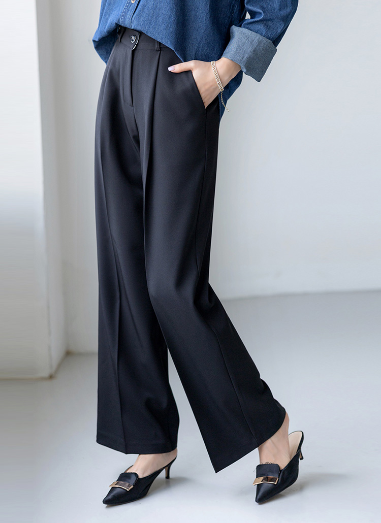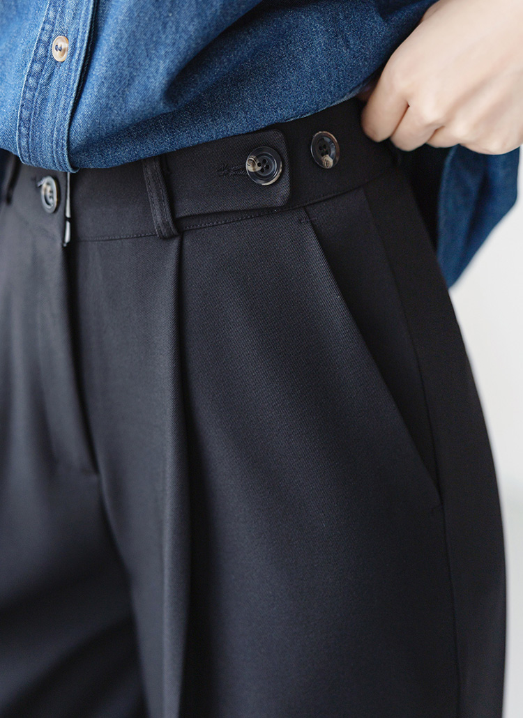메니트 조절 가능한 사이드 투버튼 원턱 와이드 슬랙스