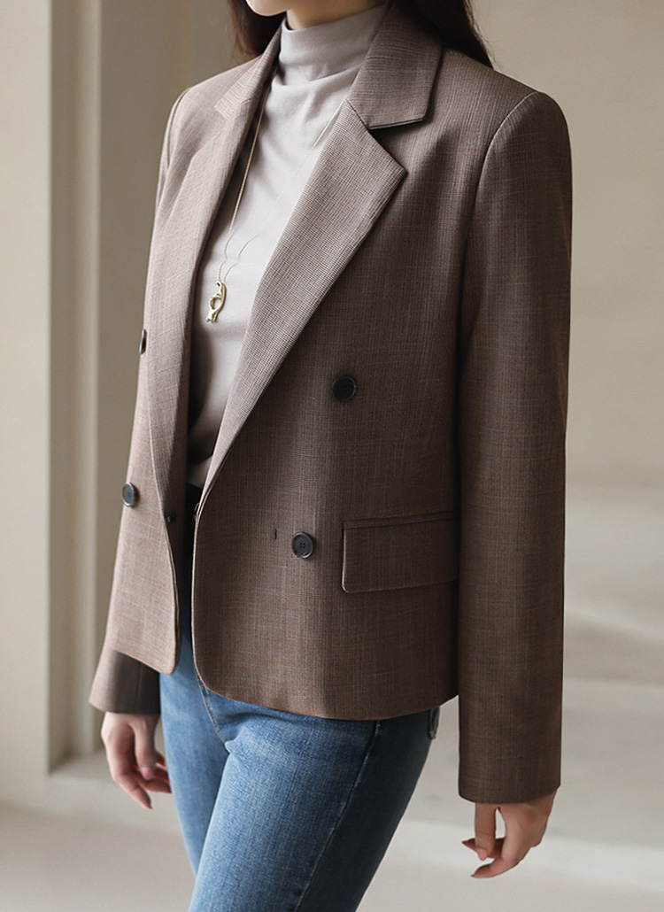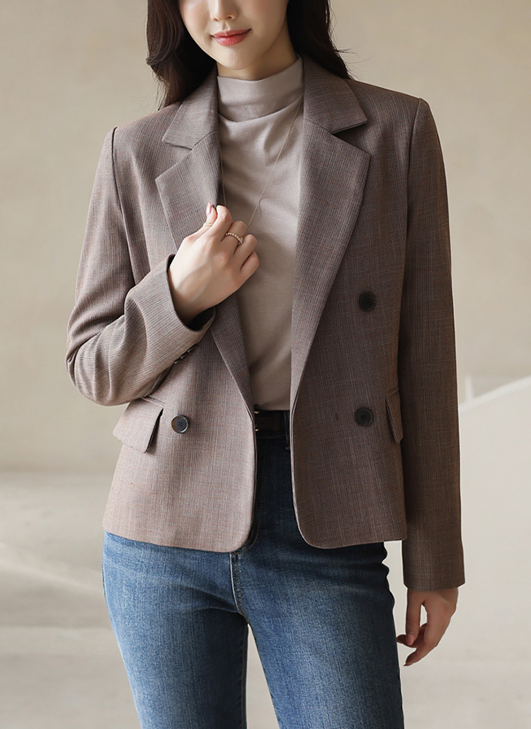 [Theonme] 잔체크 페이크 더블버튼 블레이저 자켓