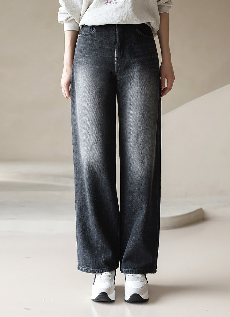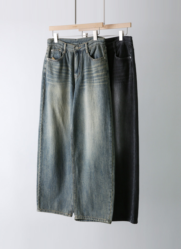 [Theonme] 하이라이트 워싱 와이드 데님 팬츠