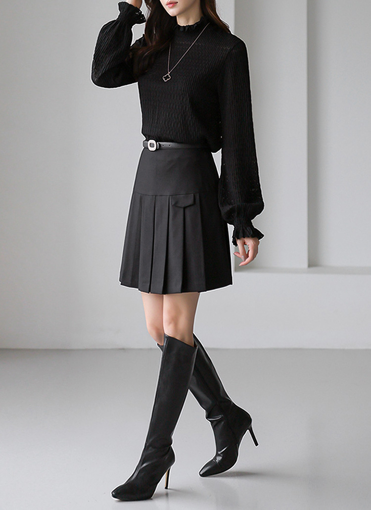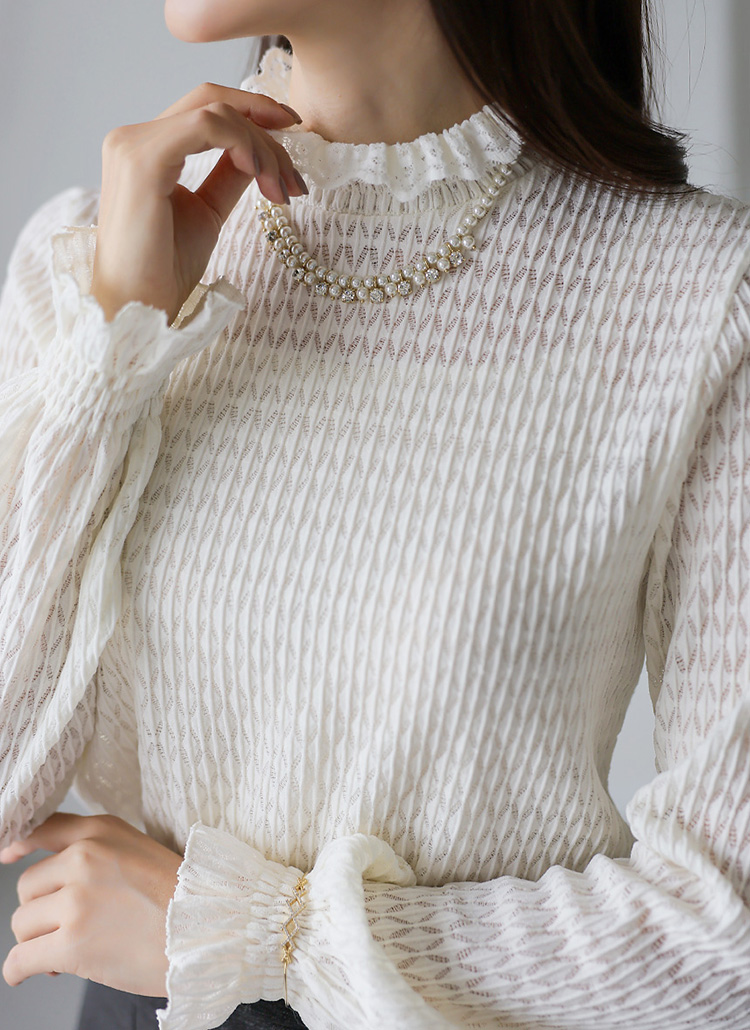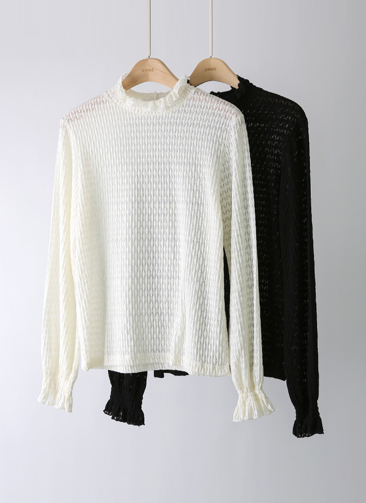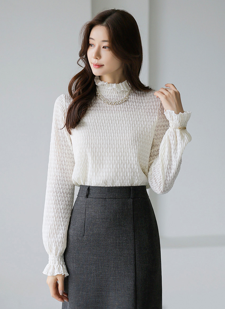 [LouisAngel] 크렘므 스모킹 셔링 레이어드 시스루 다이아 레이스 블라우스 티