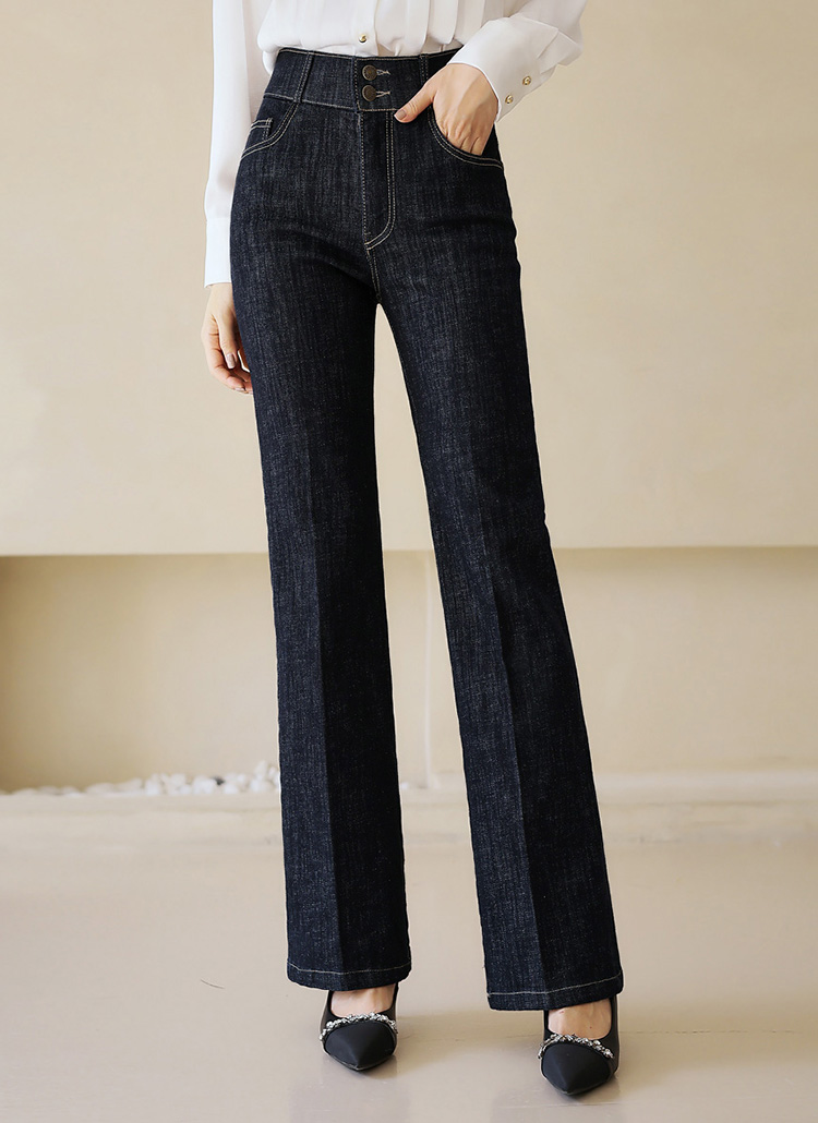 클린핏 쫀득 스판 투버튼 레직기 세미부츠컷 데님 팬츠