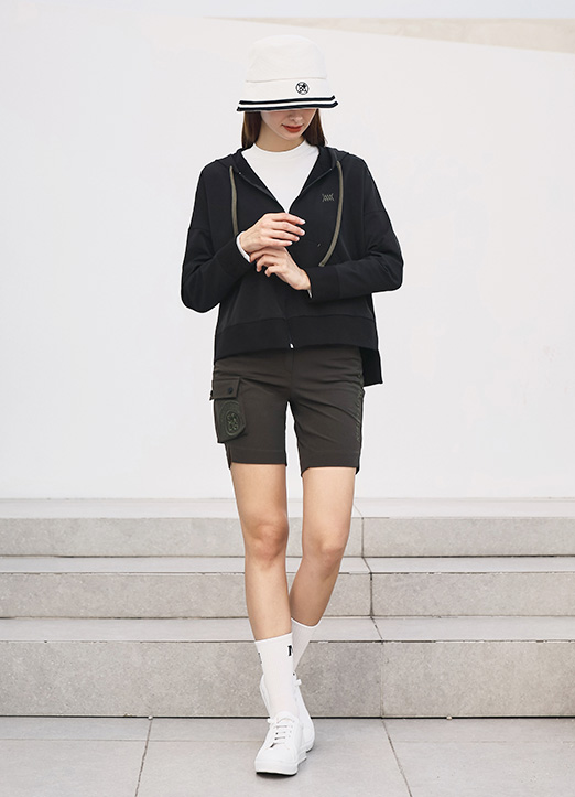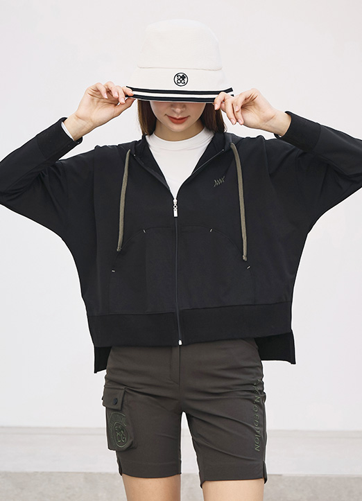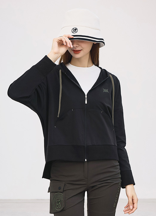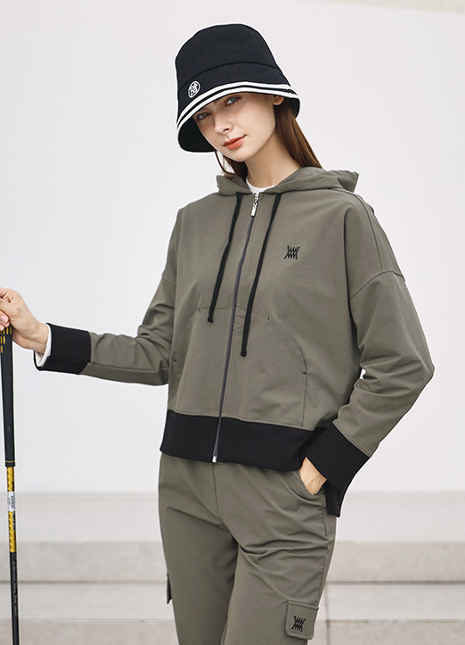 [QoG] 골프 언발 시보리 배색 자수포인트 후드 집업점퍼_2color
