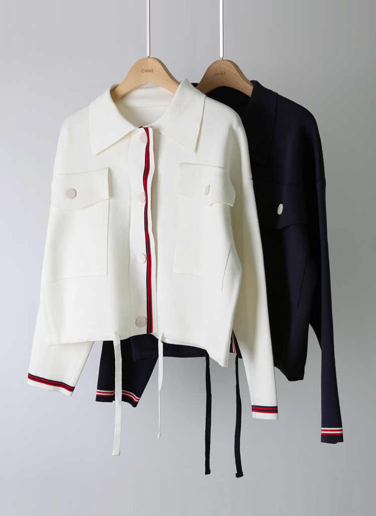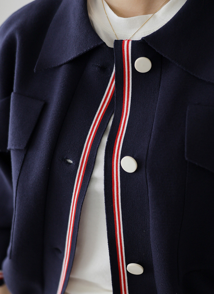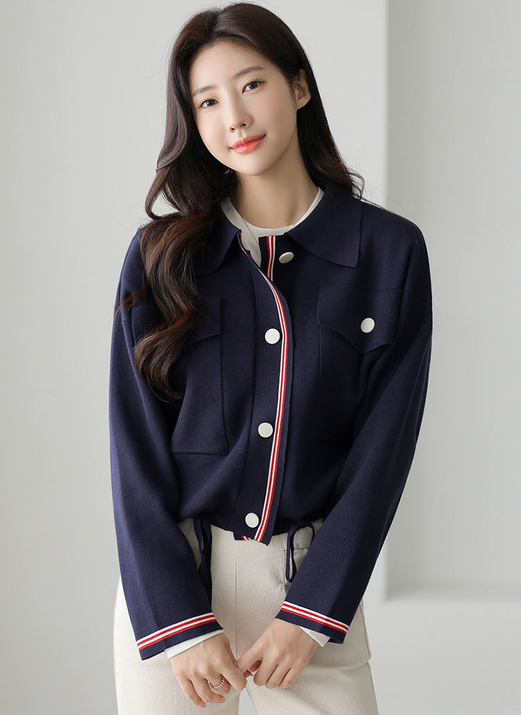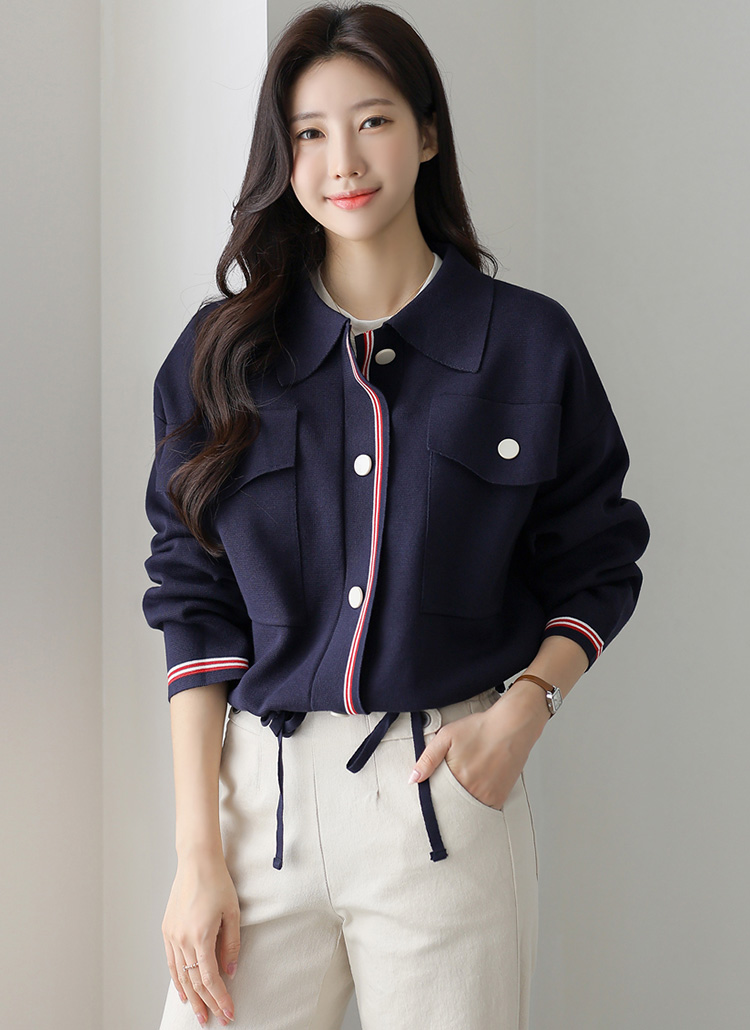 블렌디 배색라인 빅포켓 루즈핏 스트링 니트 가디건 자켓
