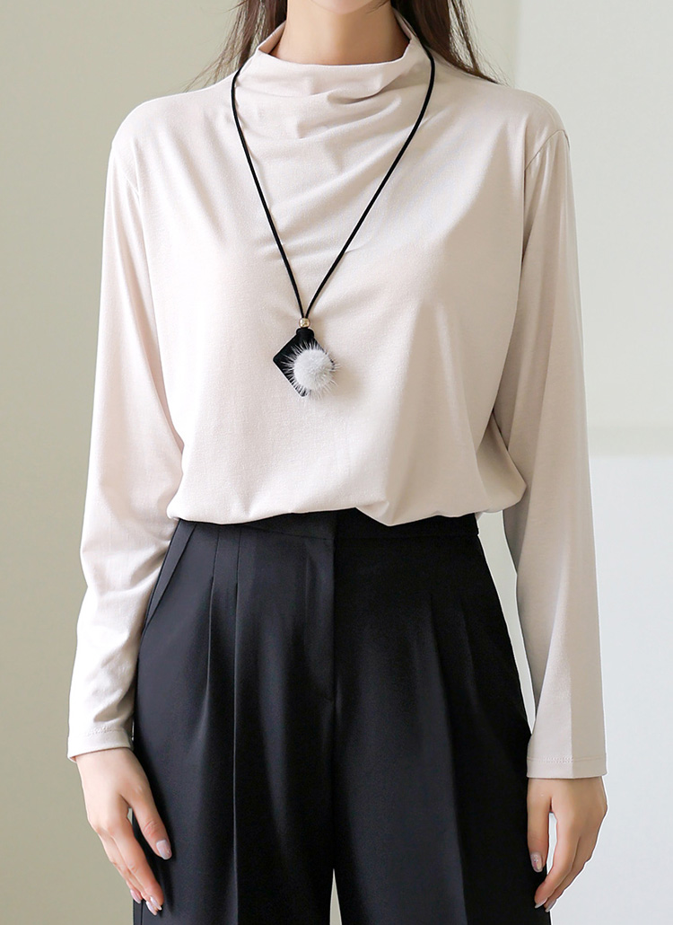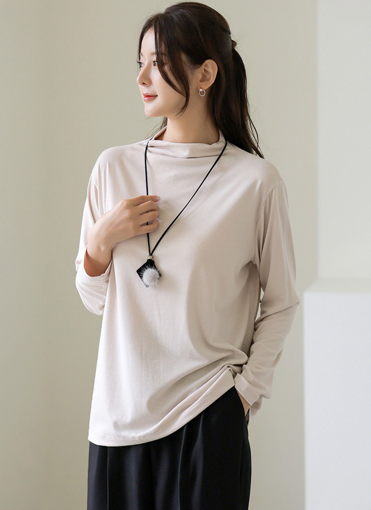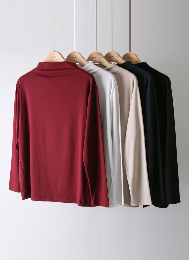 [Theonme] 레이어 심플 베이직 소프트 텐션 반하이넥 기본 티셔츠