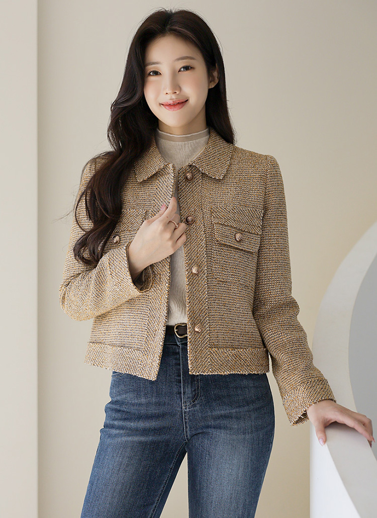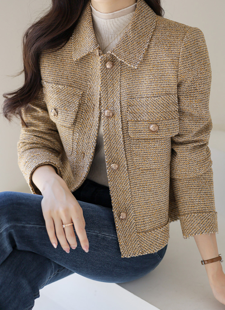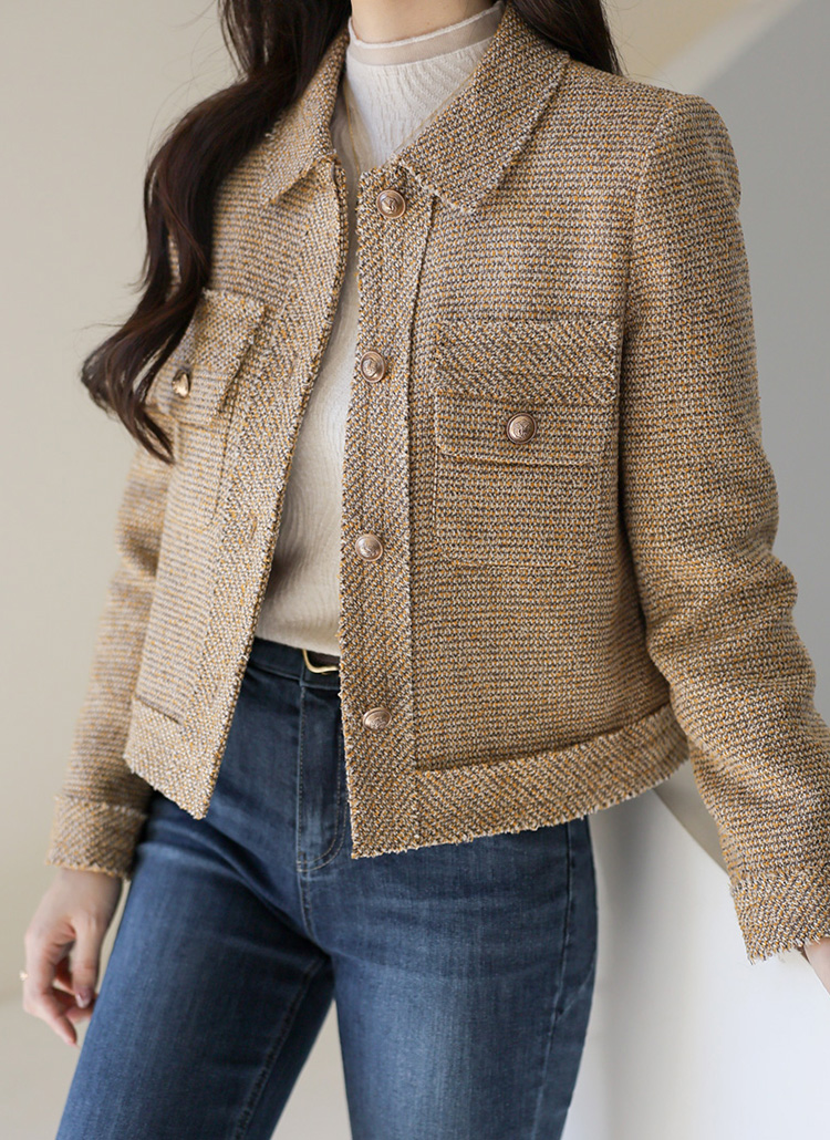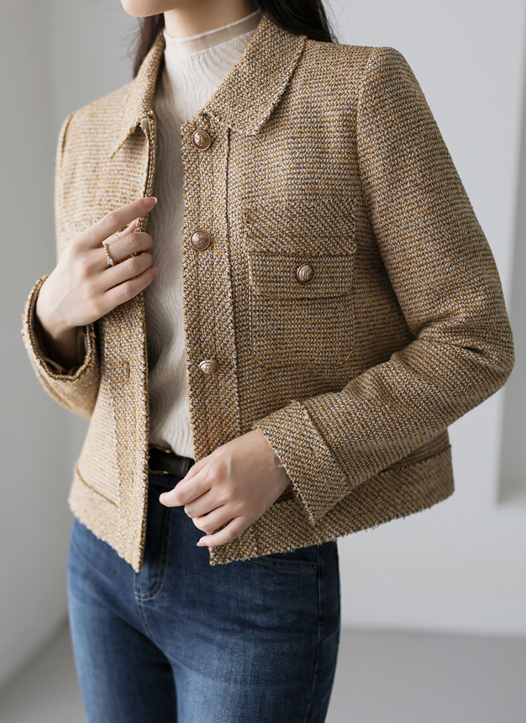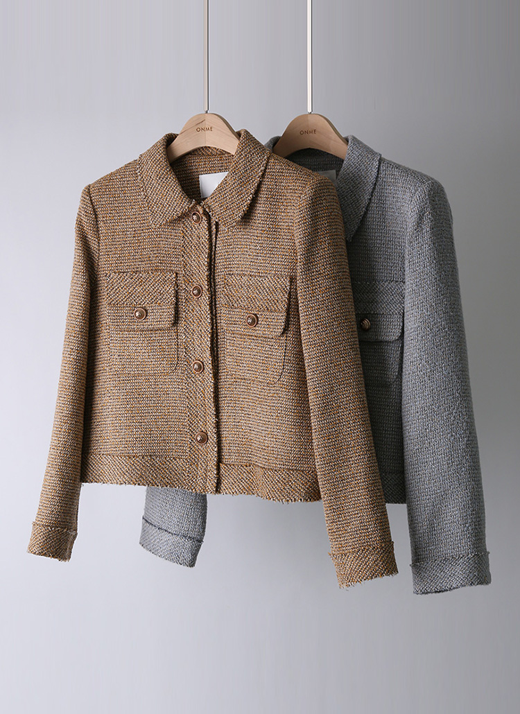 울 컬러 블렌딩 골드버튼 탄탄 트위드 카라 자켓
