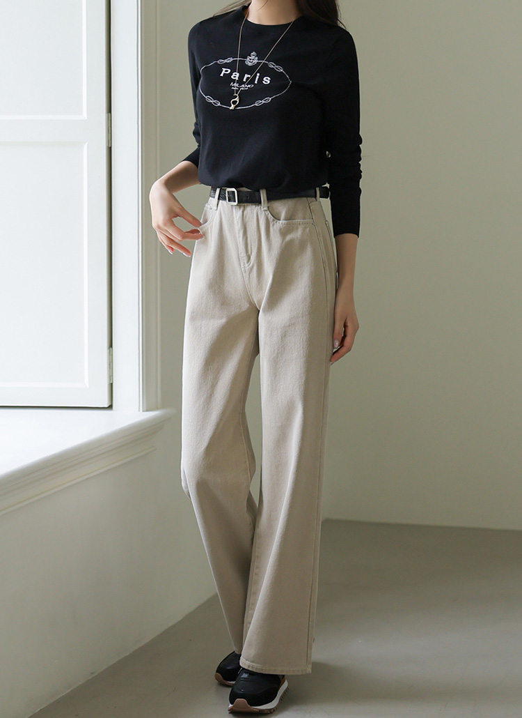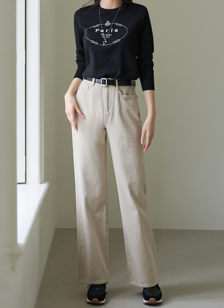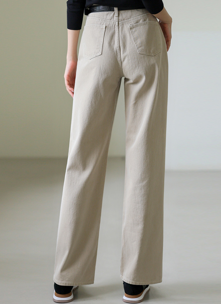 은은한 워싱 컬러가 돋보이는 세미 와이드 면 팬츠로