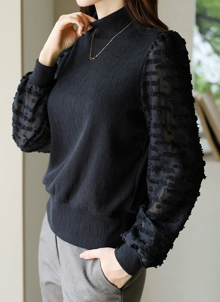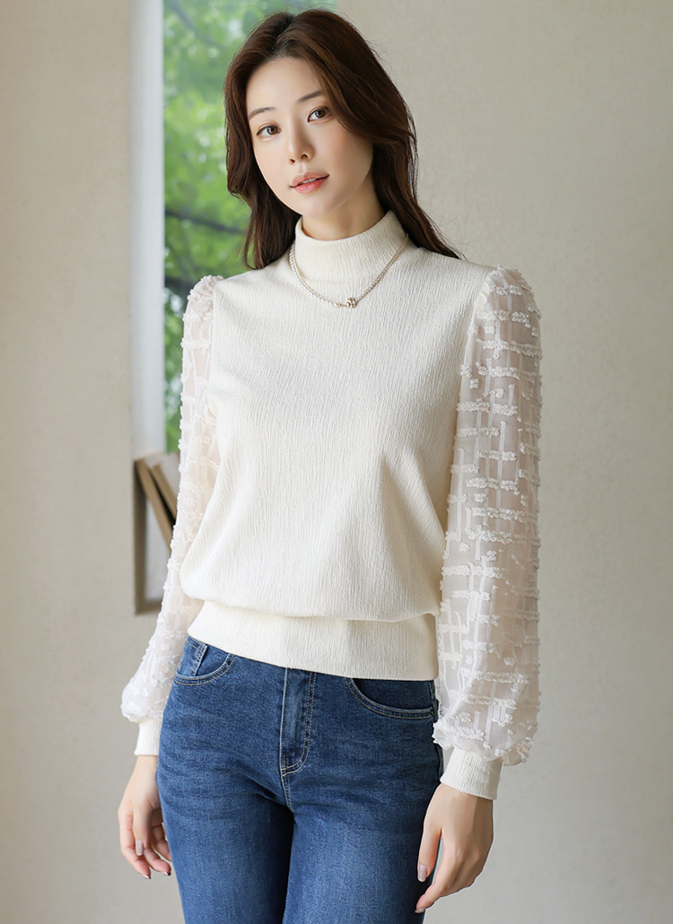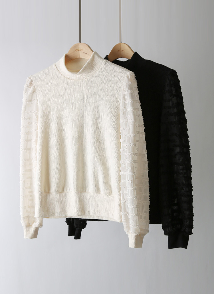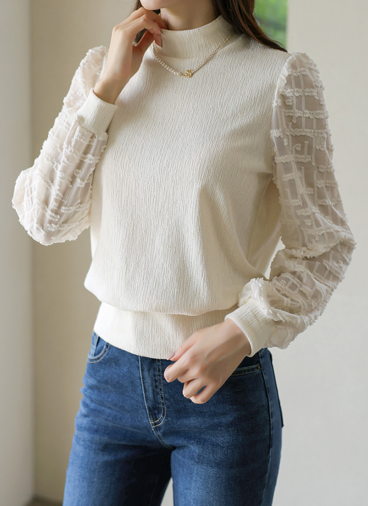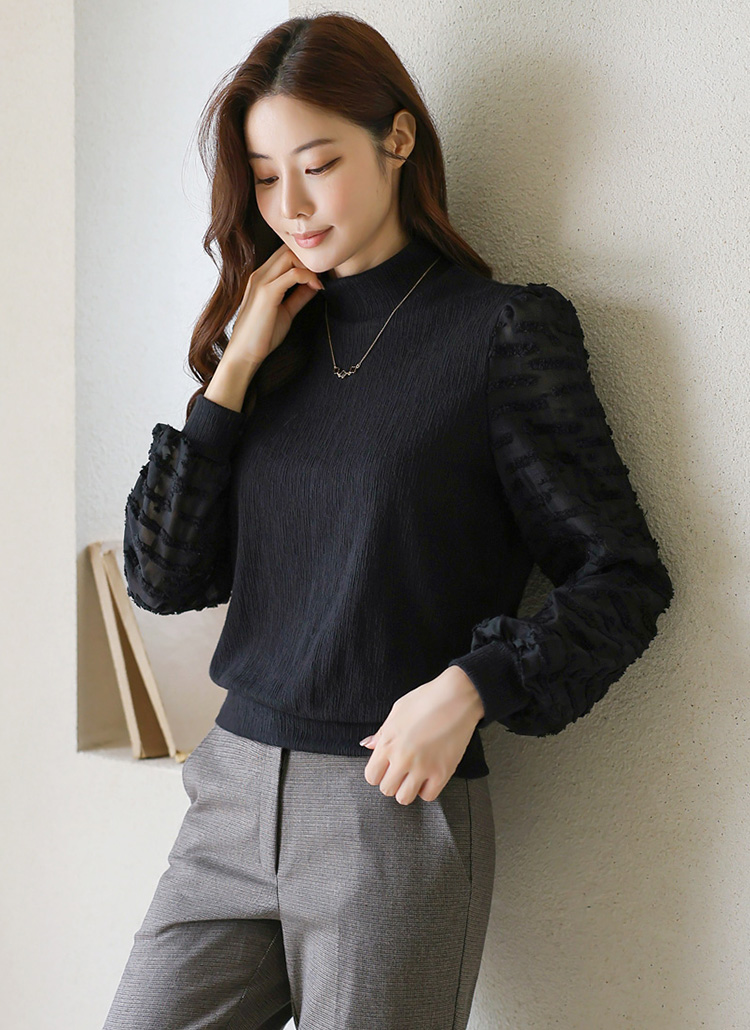 [LouisAngel] 포렌 쟈가드 쉬폰 퍼프소매 반폴라 스판 블라우스 티