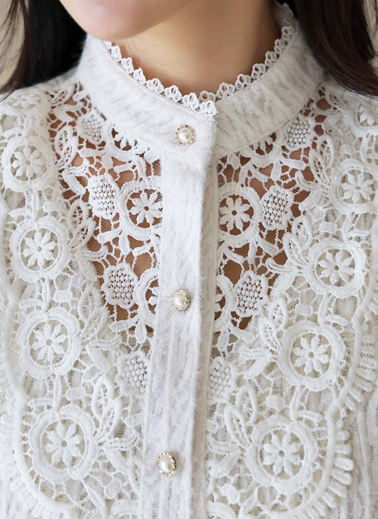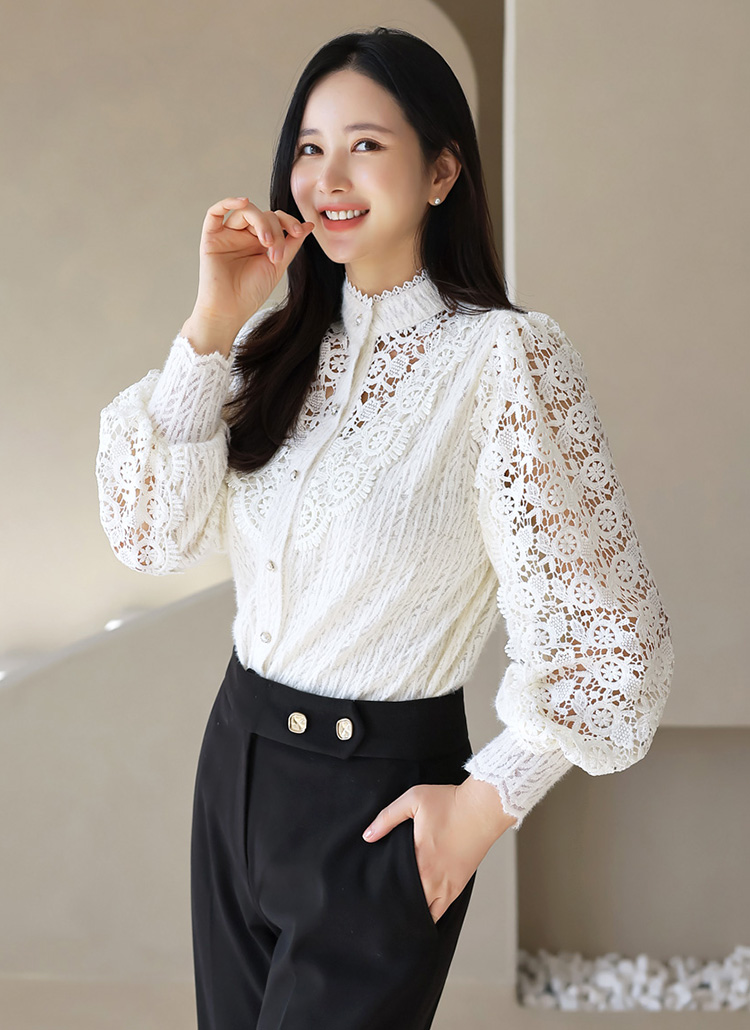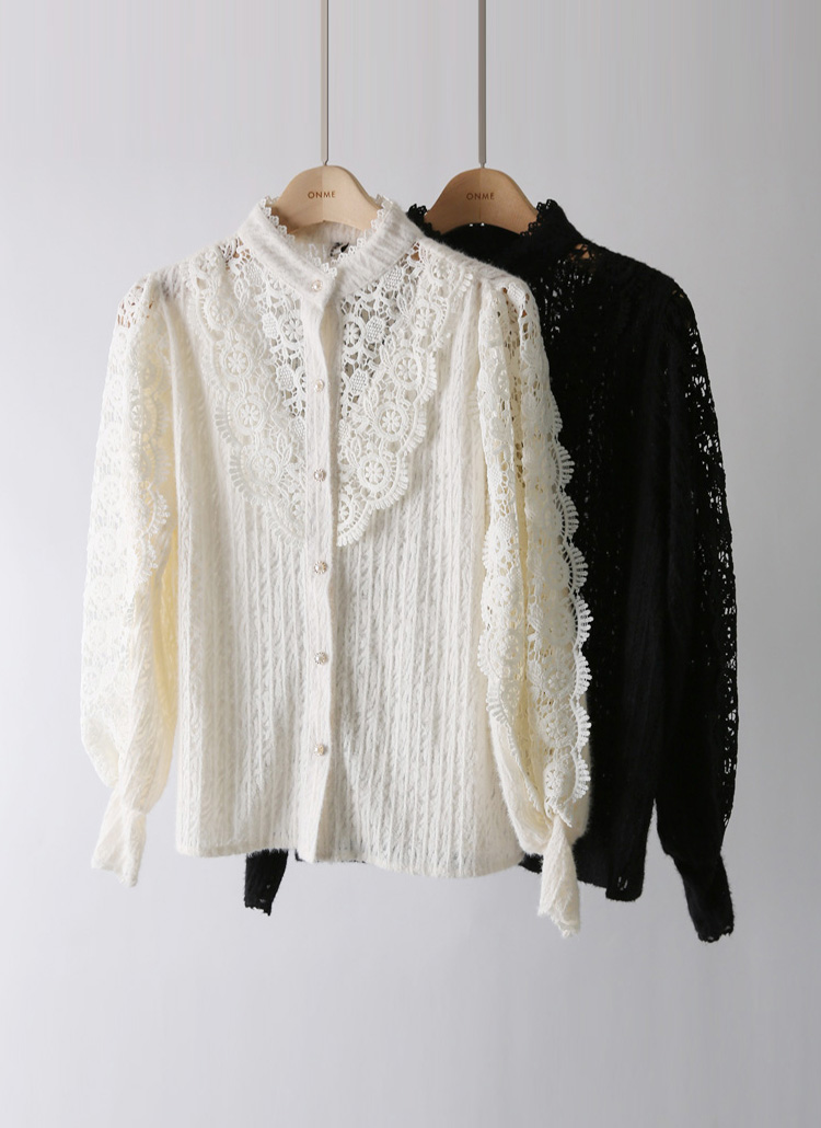 세레아 시스루한 플라워 모티브 배색 기모 레이스 블라우스
