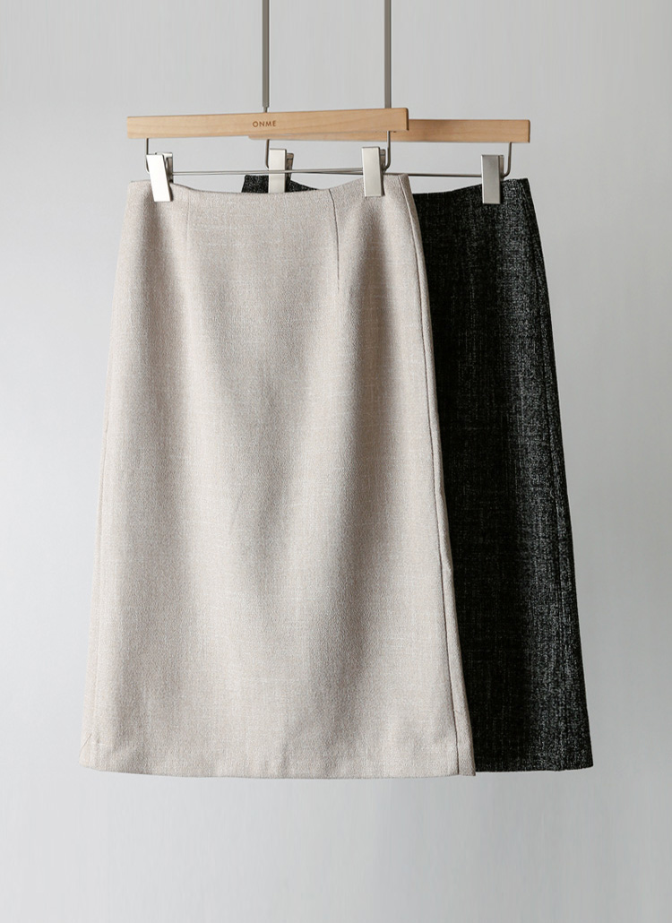 드엘브 뒷트임 심플 H라인 보카시 미디 펜슬 스커트