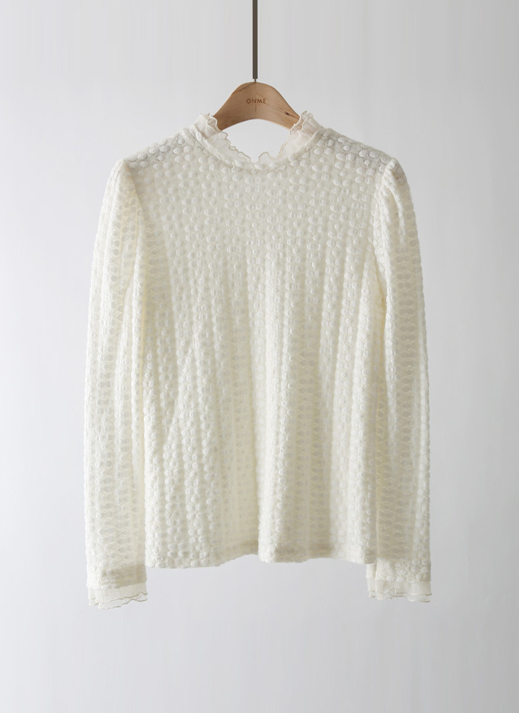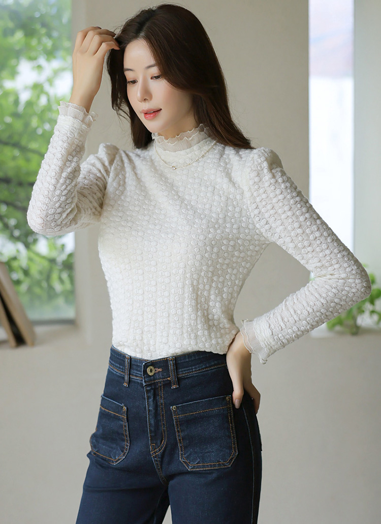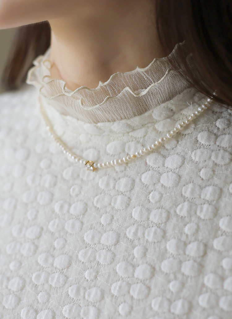 [LouisAngel] 포근 엠보 더블 프릴넥 슬림 블라우스 티
