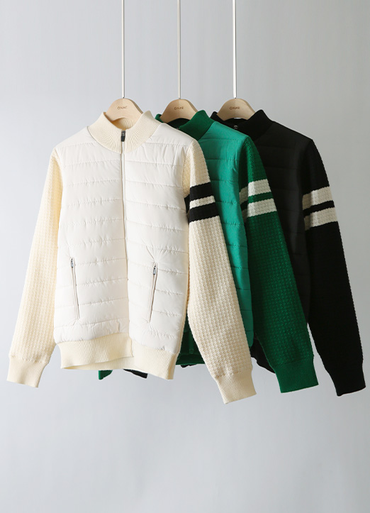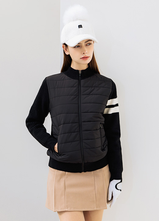 [QoG] 골프 울 캐시미어 배색 두줄 테잎소매 콤비 패딩 집업 점퍼_3color