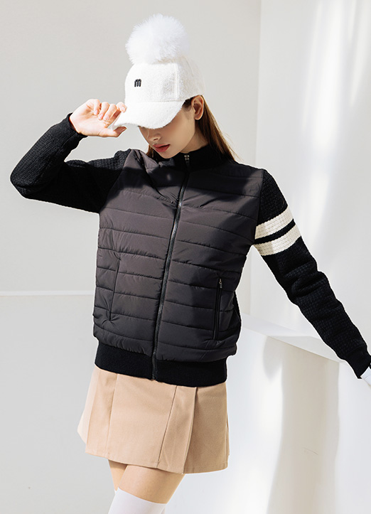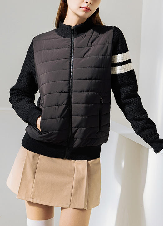 [QoG] 골프 울 캐시미어 배색 두줄 테잎소매 콤비 패딩 집업 점퍼_3color