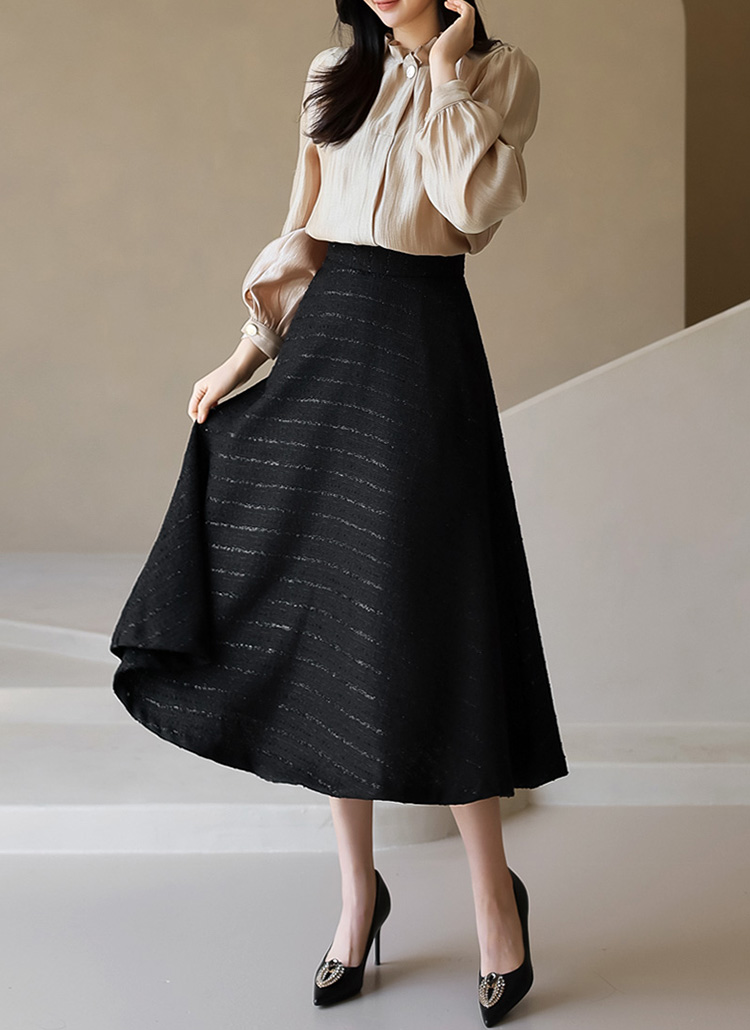 샤린 펄 웨이브 라인 트위드 A라인 플레어 스커트