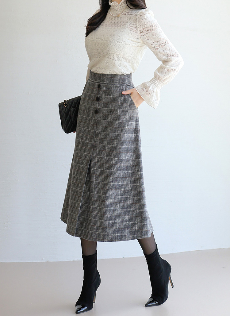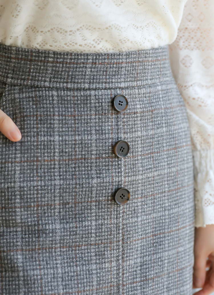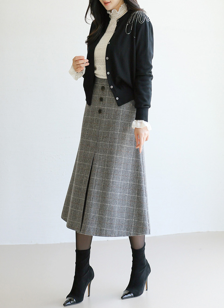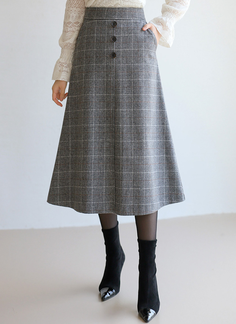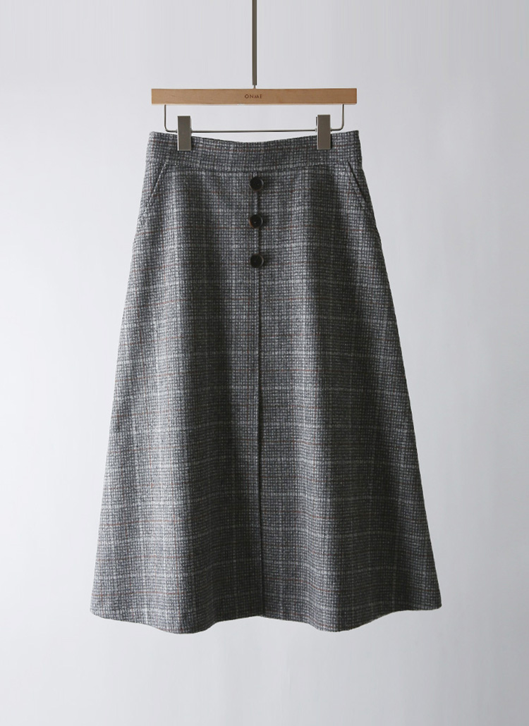 [LouisAngel] 따스한 텍스쳐 그레이 타탄체크 플레어 스커트