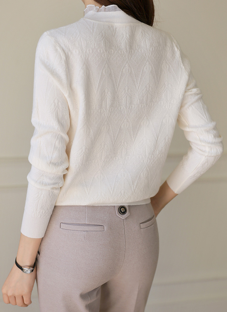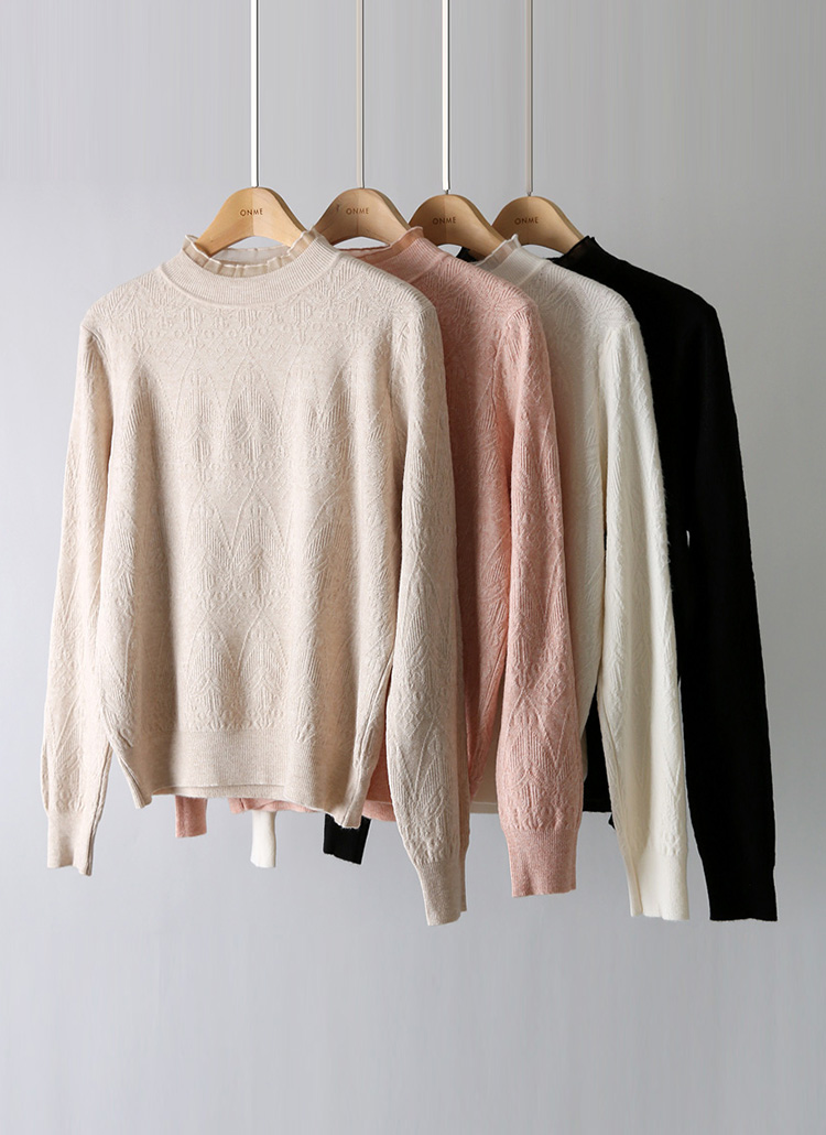 레니피 눈꽃 쟈가드 에스닉 텍스쳐 프릴넥 니트