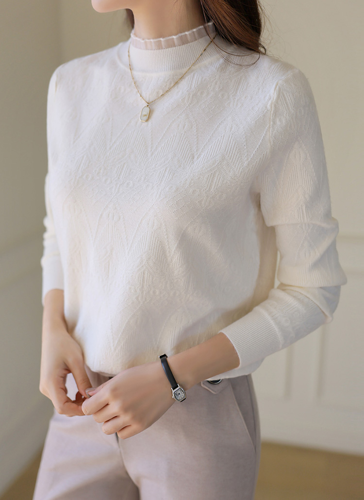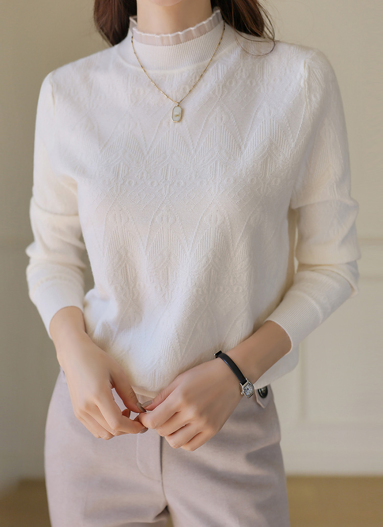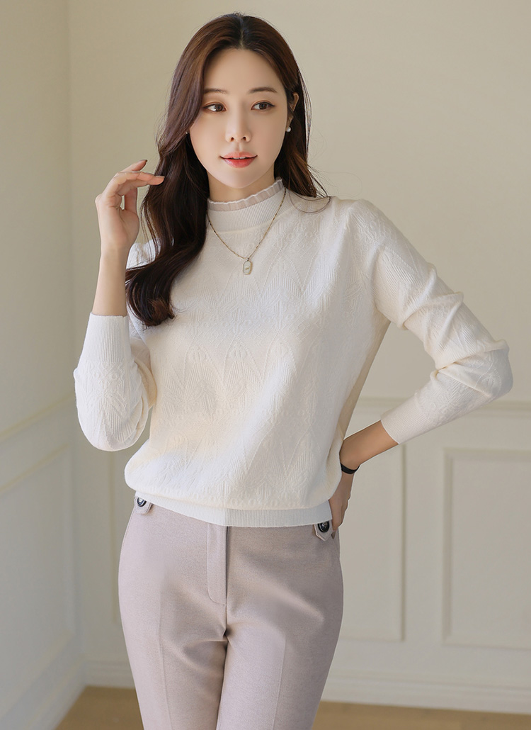 시스루한 프릴 넥라인으로 목선을 아름답게 강조해주며