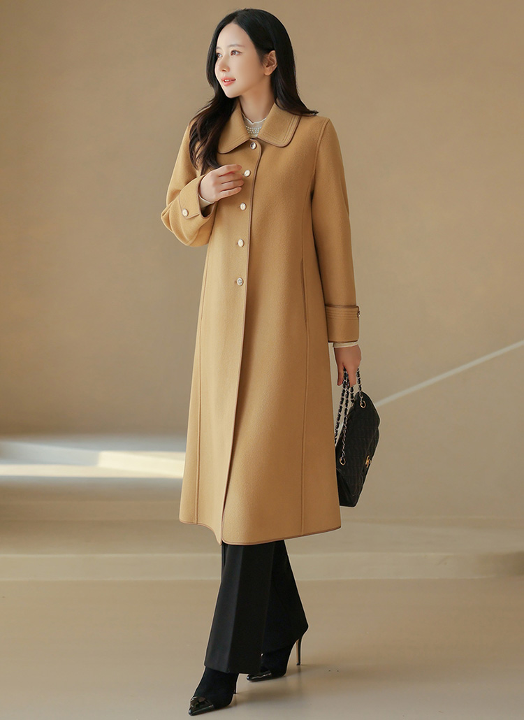 라인 테이핑 울 텐셀 골드버튼 고퀄 핸드메이드 코트