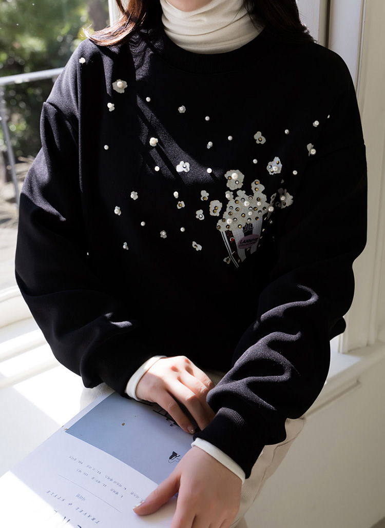 [LouisAngel] 조이픽 비즈 쥬얼 팝콘 프린팅 네오플랜 맨투맨 티셔츠