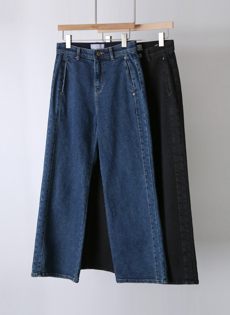 사이드 절개라인 기모안감 와이드 데님 팬츠