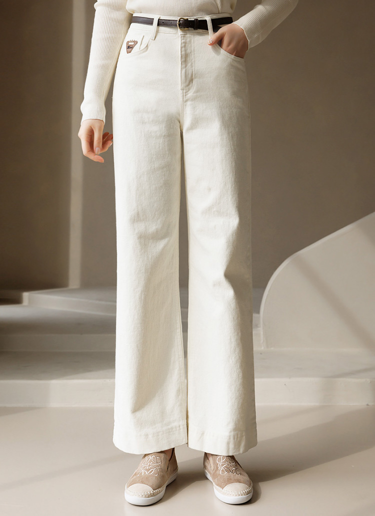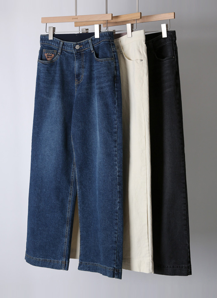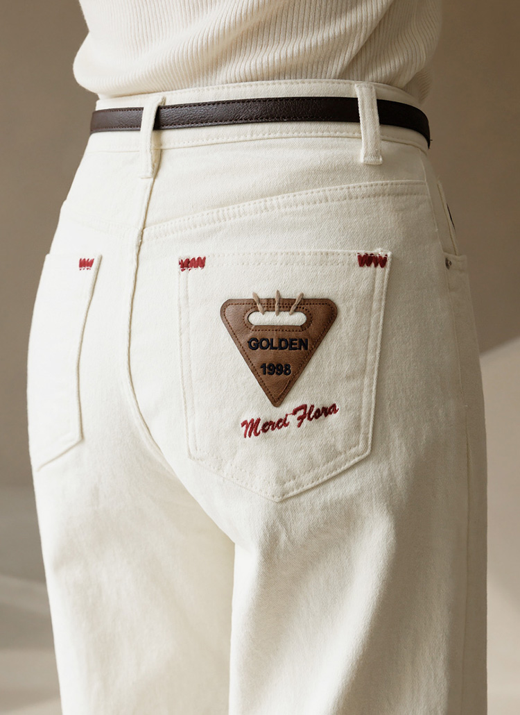 레드 스티치 포켓 패치 자수 세미와이드 데님 코튼 팬츠