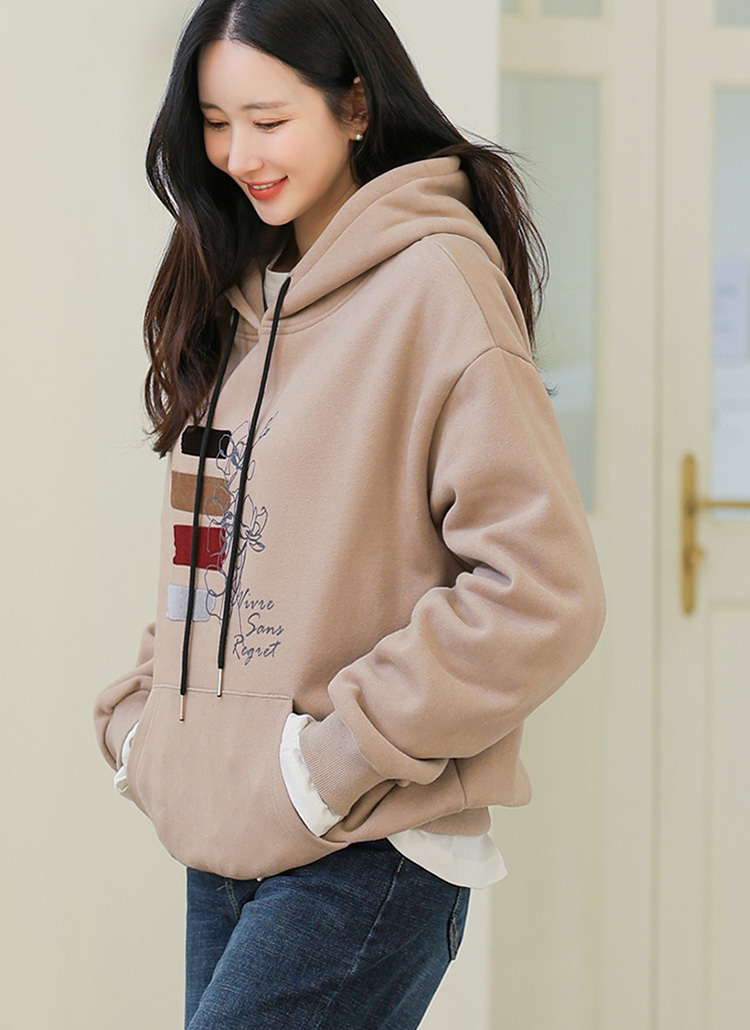 [LouisAngel] 벨로아 팔레트 플라워 드로잉 포인트 발열 속 기모 후드 맨투맨 티셔츠