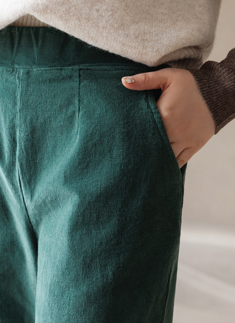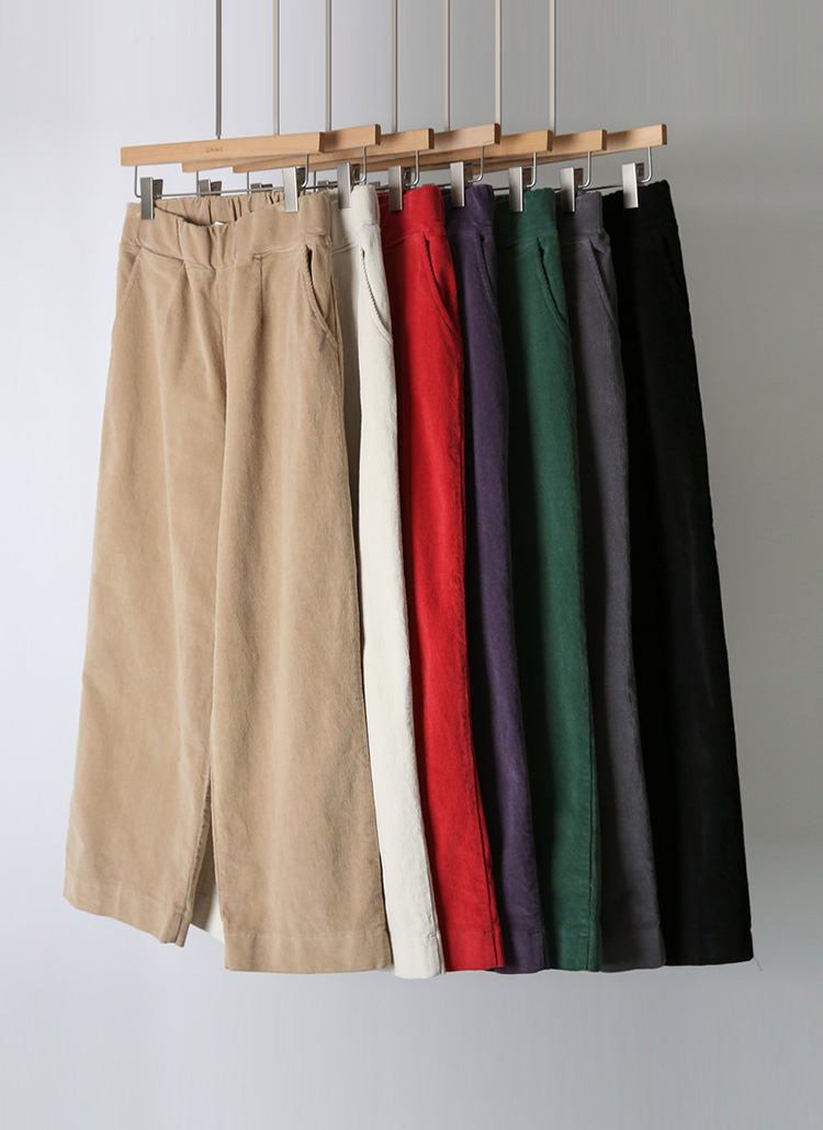 컬러 코듀로이 기모안감 뒷밴딩 와이드 팬츠