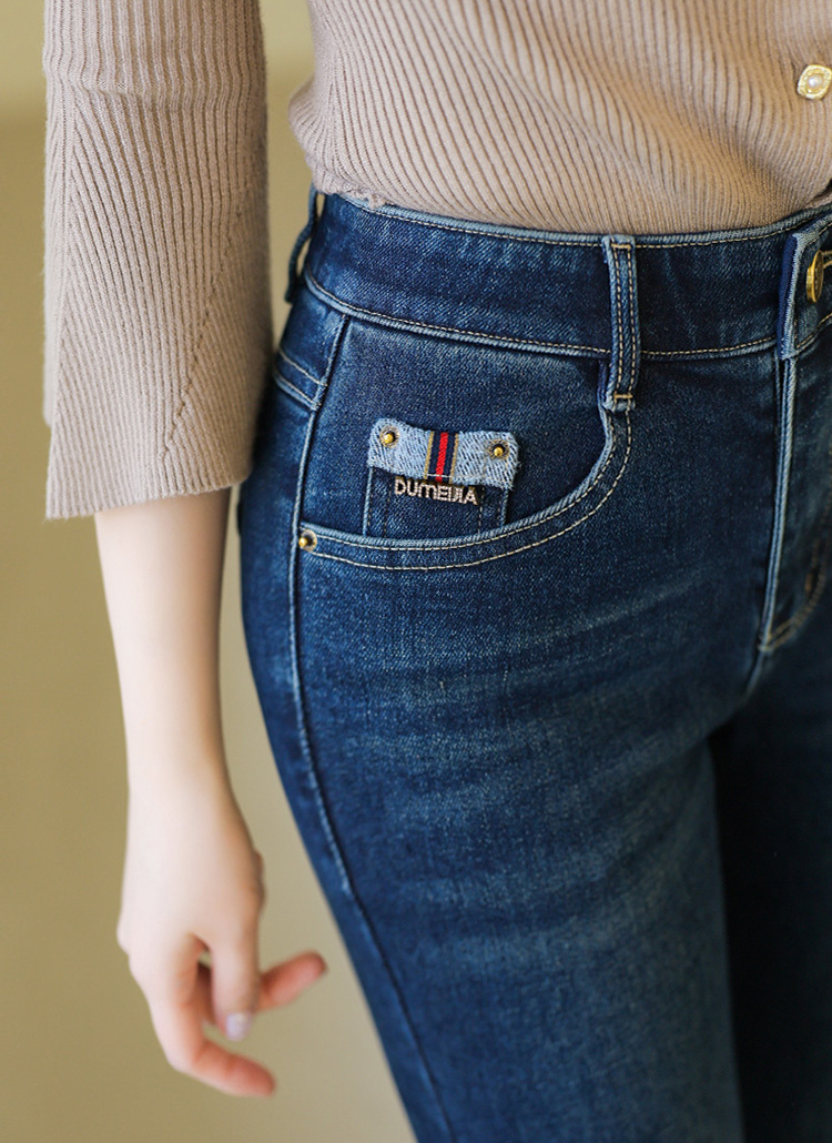 레니아 테이핑 포인트 히트 기모 라인 슬림 부츠컷 데님 팬츠