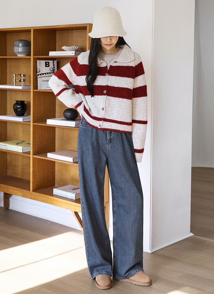 내추럴한 실루엣이 돋보이는 기모 와이드 데님 팬츠에요 :)