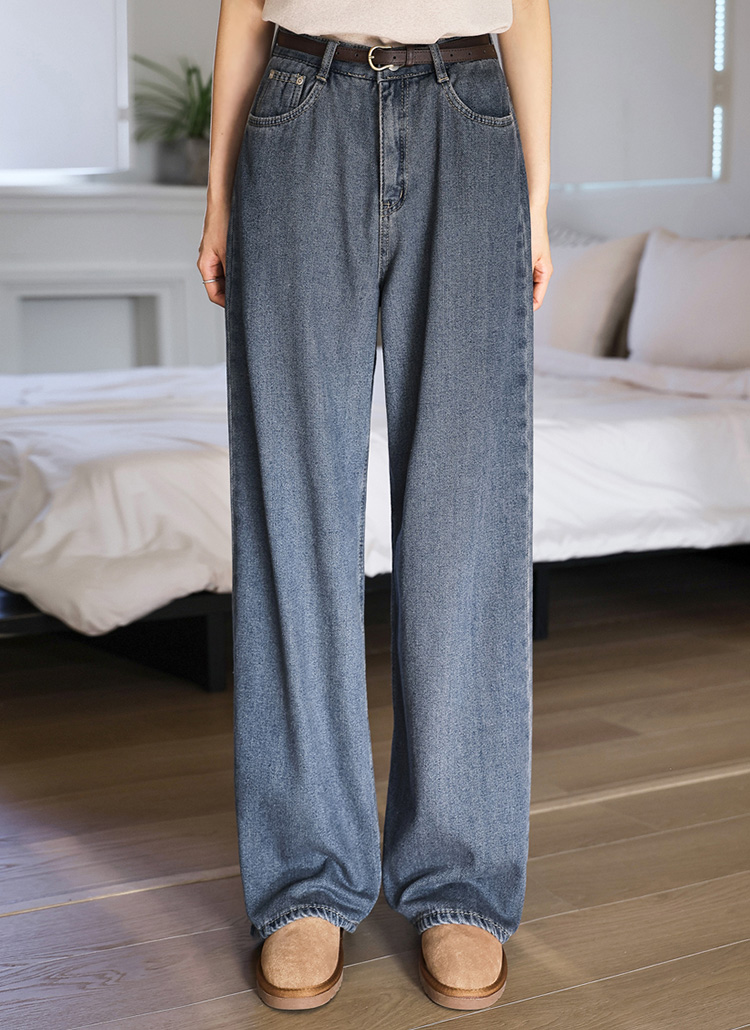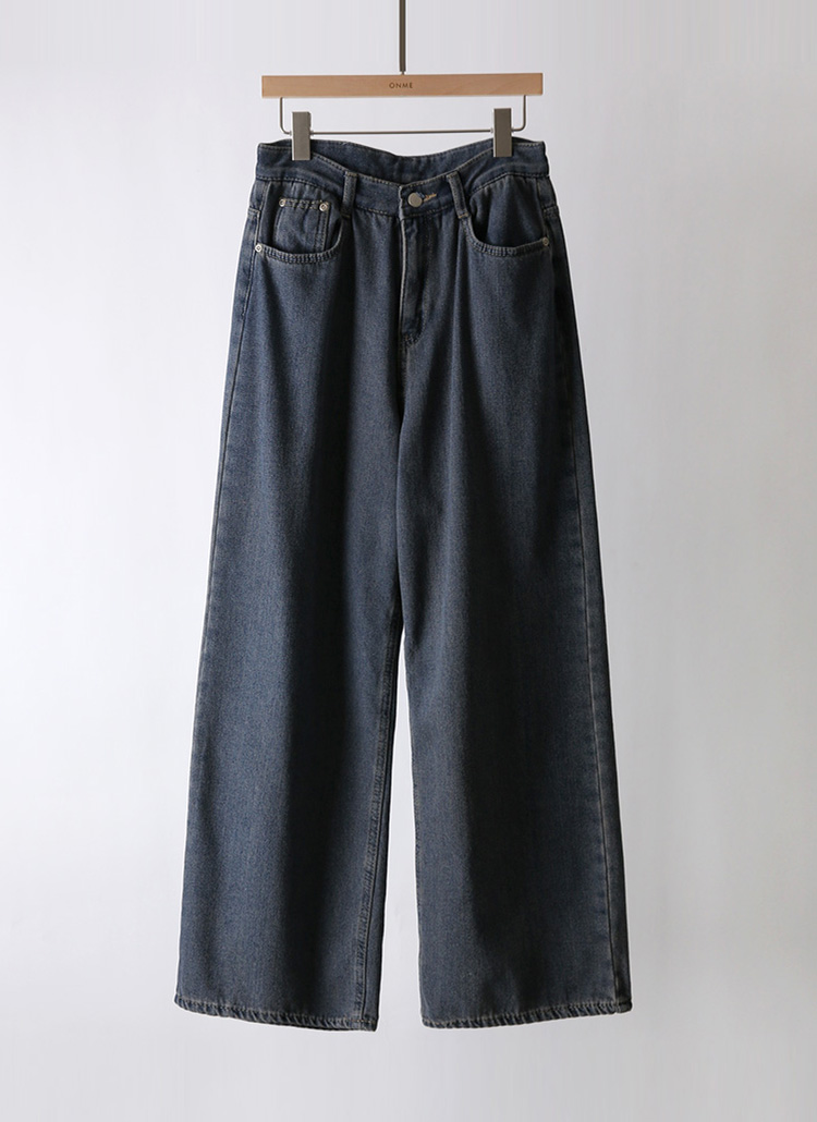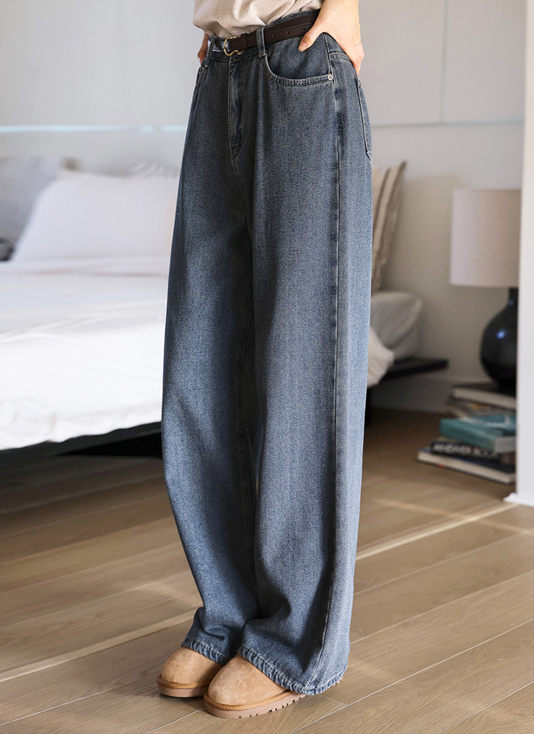 [Theonme] 내추럴 실루엣 기모안감 와이드 데님 팬츠