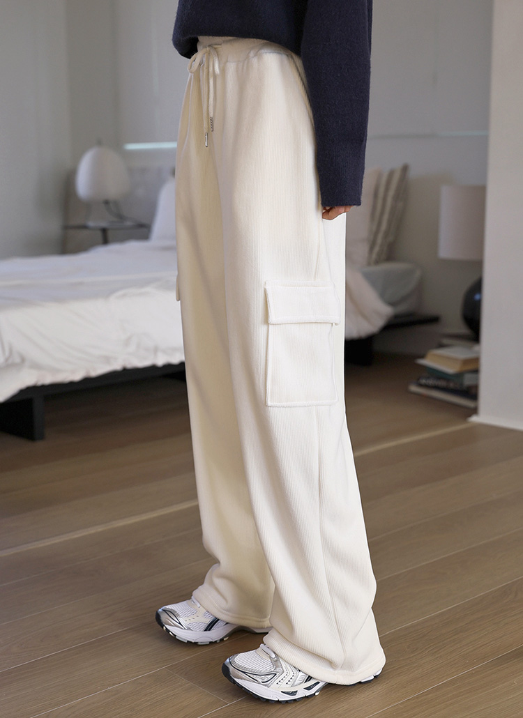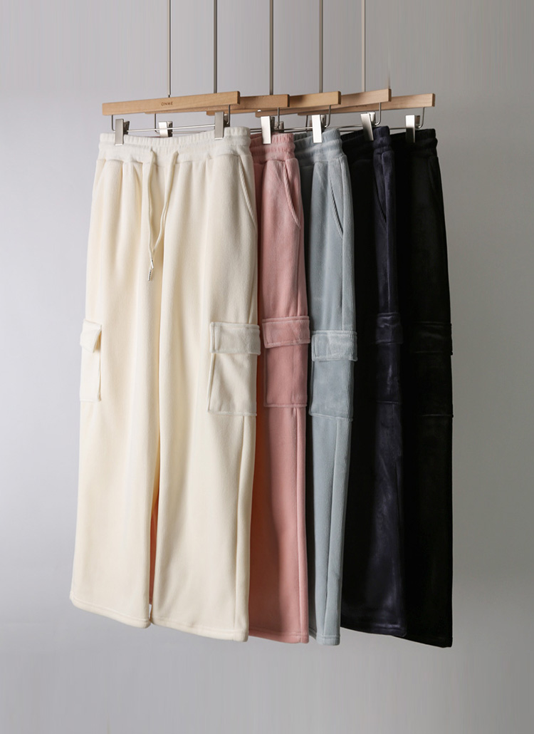 [Theonme] 벨벳 코듀로이 도톰한 기모안감 카고 와이드 밴딩 팬츠