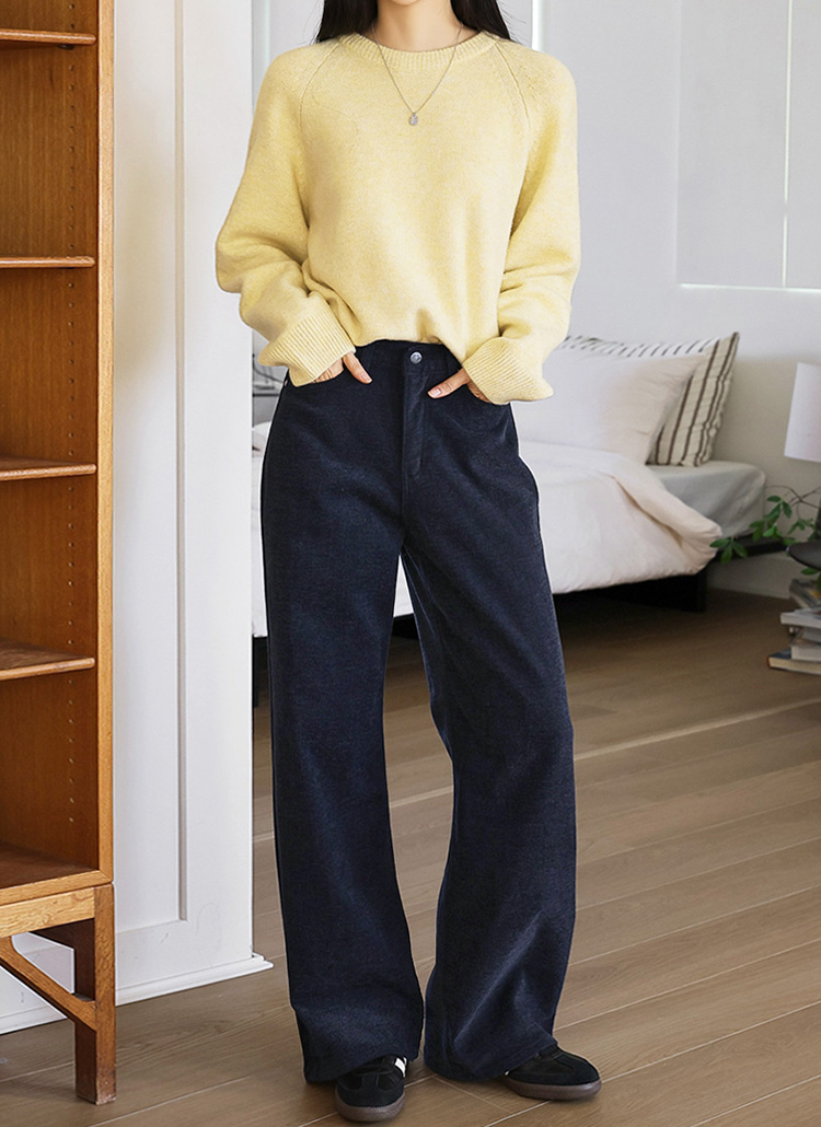 벨벳 텍스쳐에 기모 안감이 더해진 와이드 코튼 팬츠로