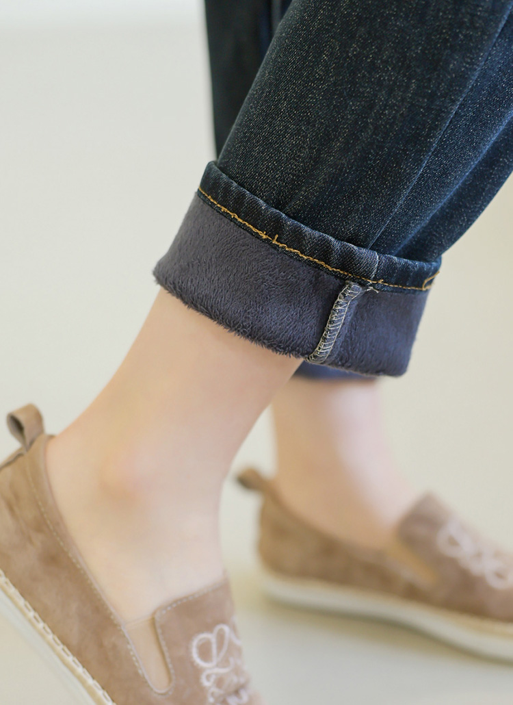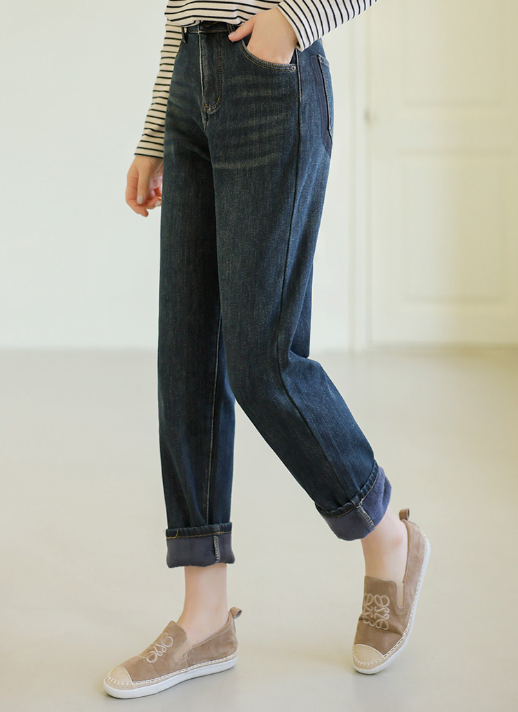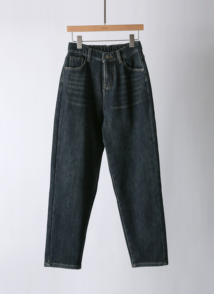 따뜻한 융 기모 안감으로 겨울철에도 포근하게 착용하기 좋은 세미 배기 데님 팬츠에요 :)
