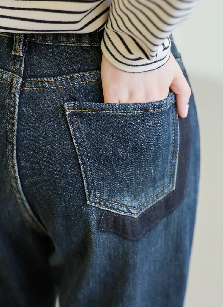 플로드 백 밴딩 히트 융 기모 안감 세미 배기 데님 팬츠