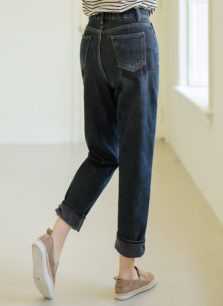 플로드 백 밴딩 히트 융 기모 안감 세미 배기 데님 팬츠는