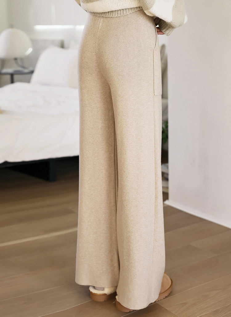 비스코스 혼방의 와이드 니트 밴딩 팬츠에요 :)