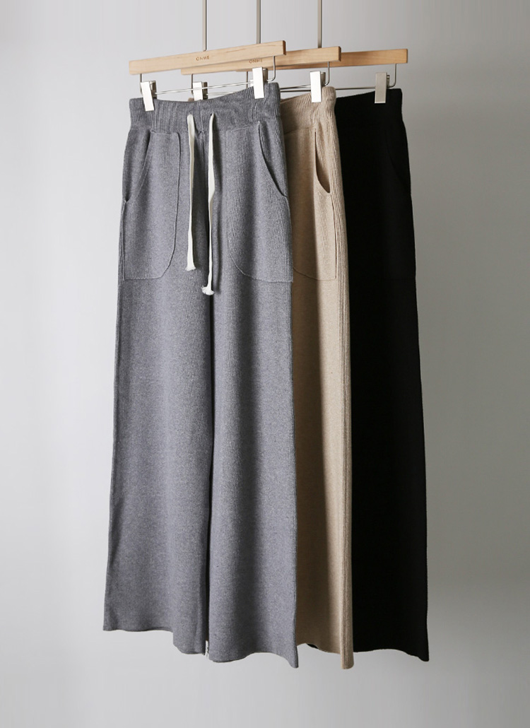 [Theonme] 내추럴핏 비스코스 포켓 와이드 니트 밴딩 팬츠