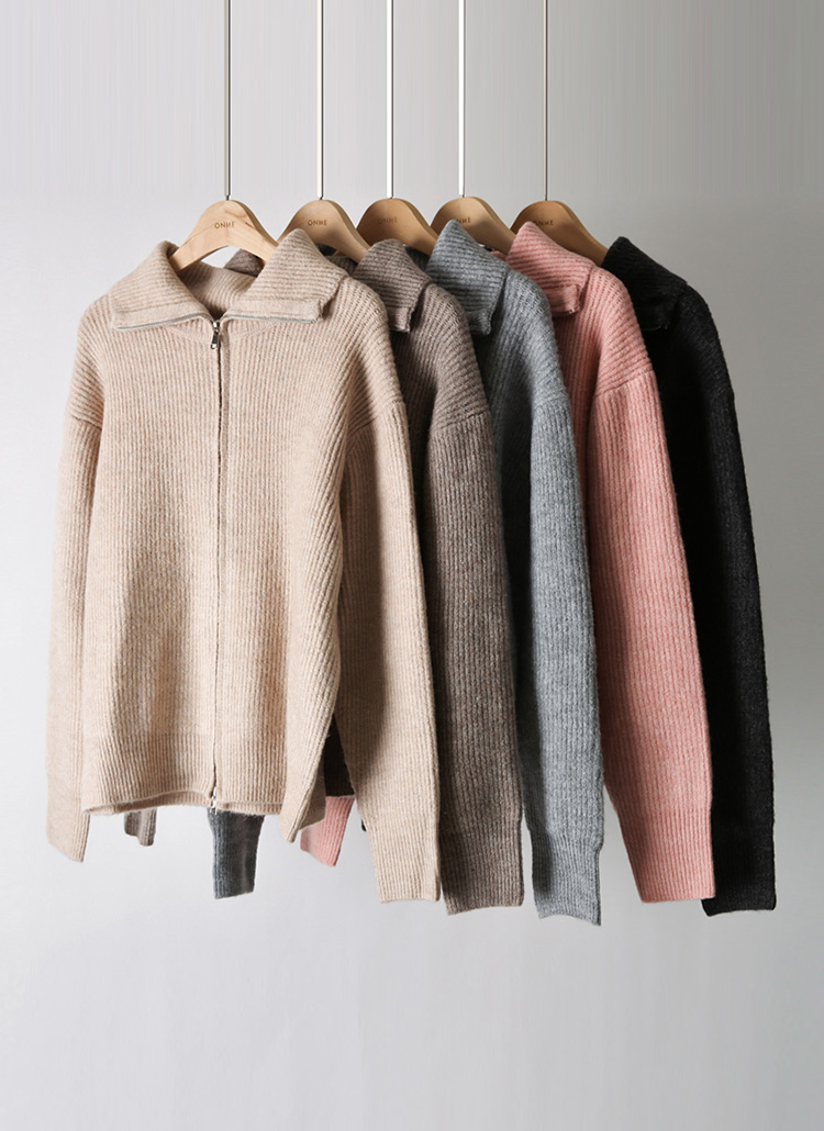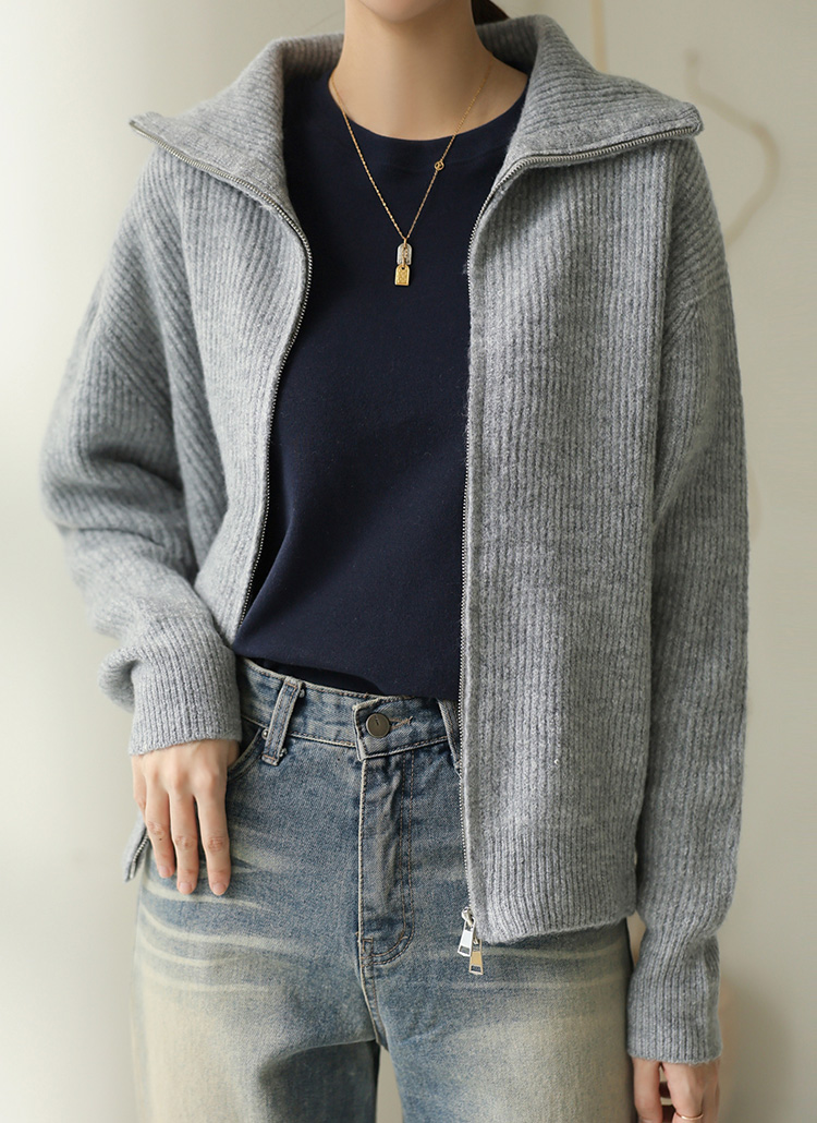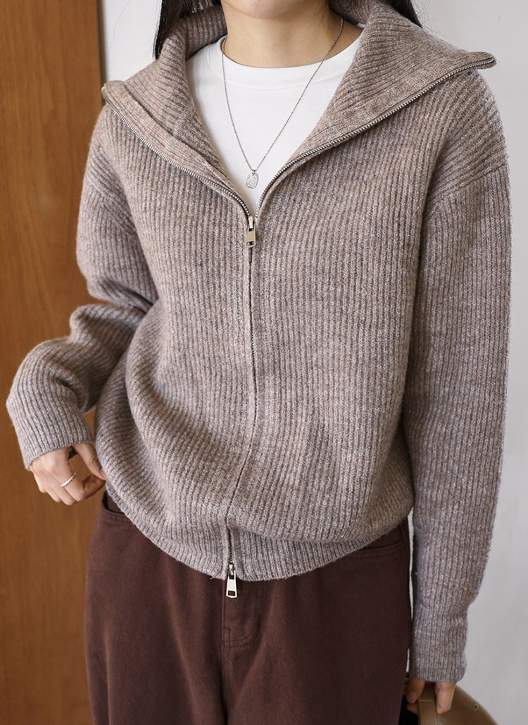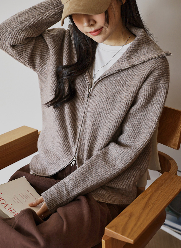[Theonme] 울 골지 투웨이 카라 집업 니트 가디건