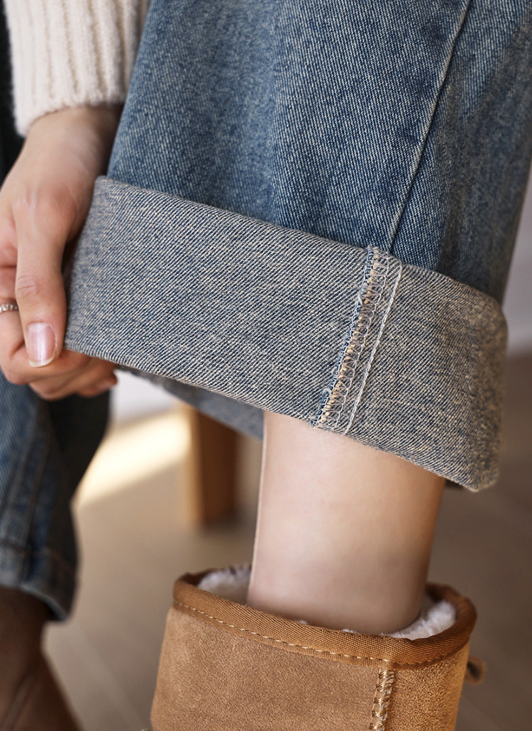 [Theonme] 캣 하이라이트 워싱 기모 와이드 데님 팬츠