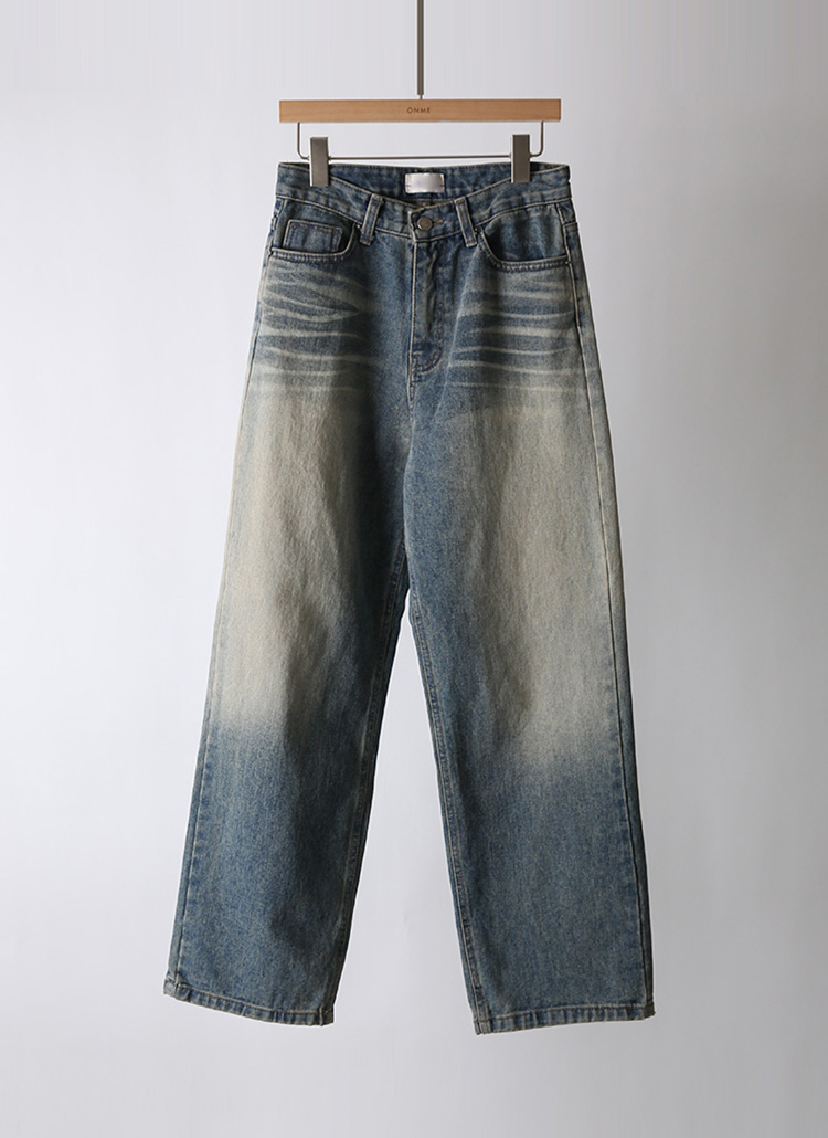 [Theonme] 캣 하이라이트 워싱 기모 와이드 데님 팬츠