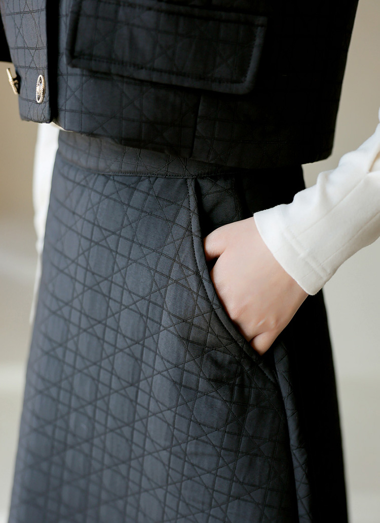엘론느 다이아 퀄팅 패딩 조끼 베스트 A라인 플레어 스커트 세트