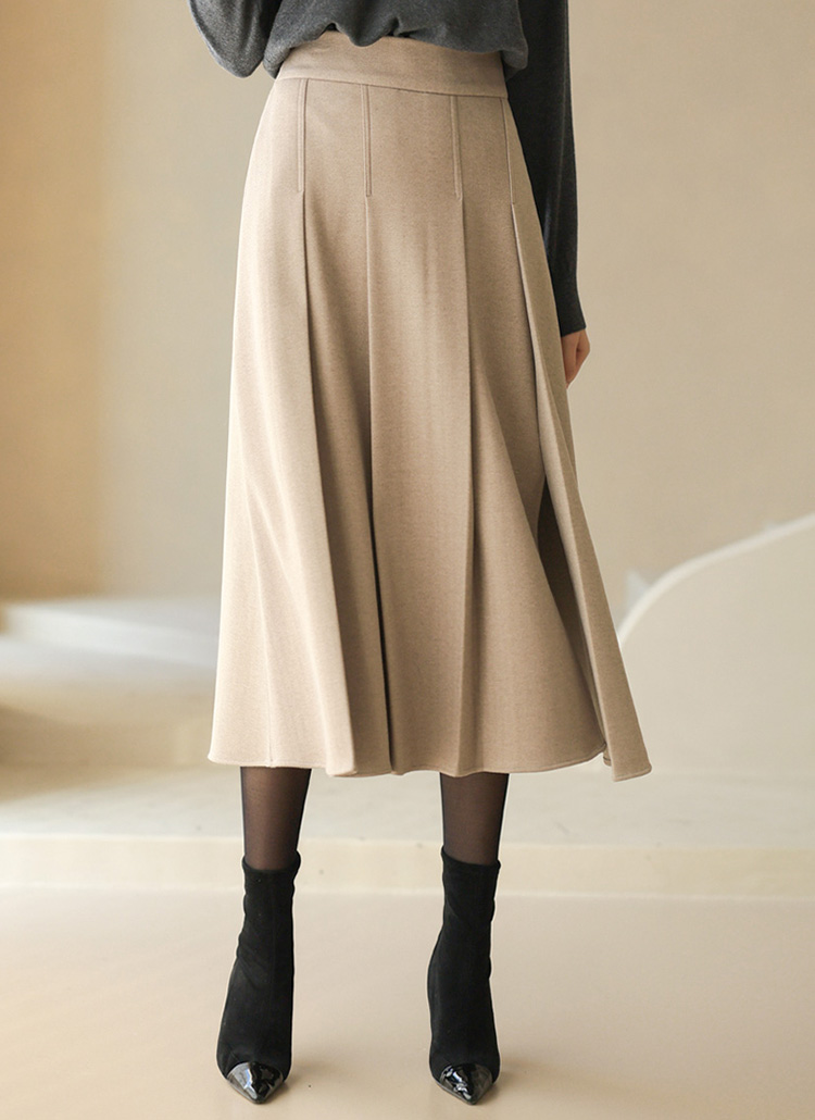 [LouisAngel] 엘리지 소프트웜 백 밴딩 트임 디테일 A라인 플리츠 롱 스커트