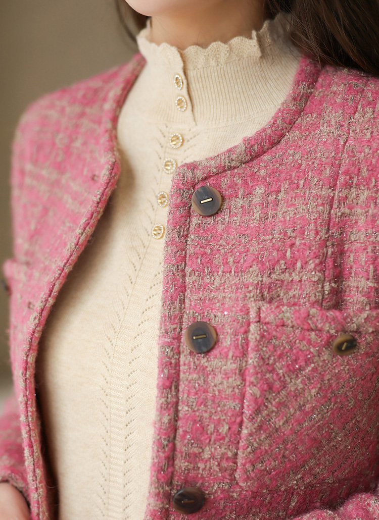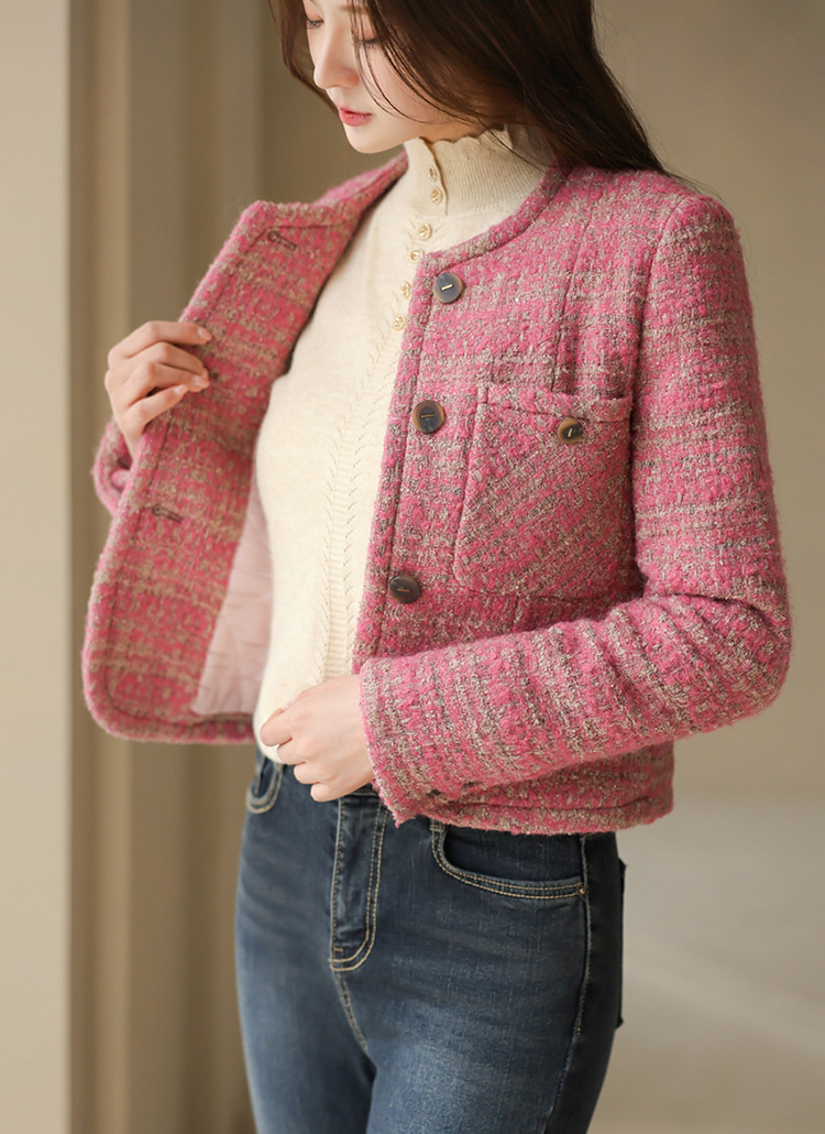 세련된 노카라 디자인에 울 블렌딩 부클 트위드 소재로